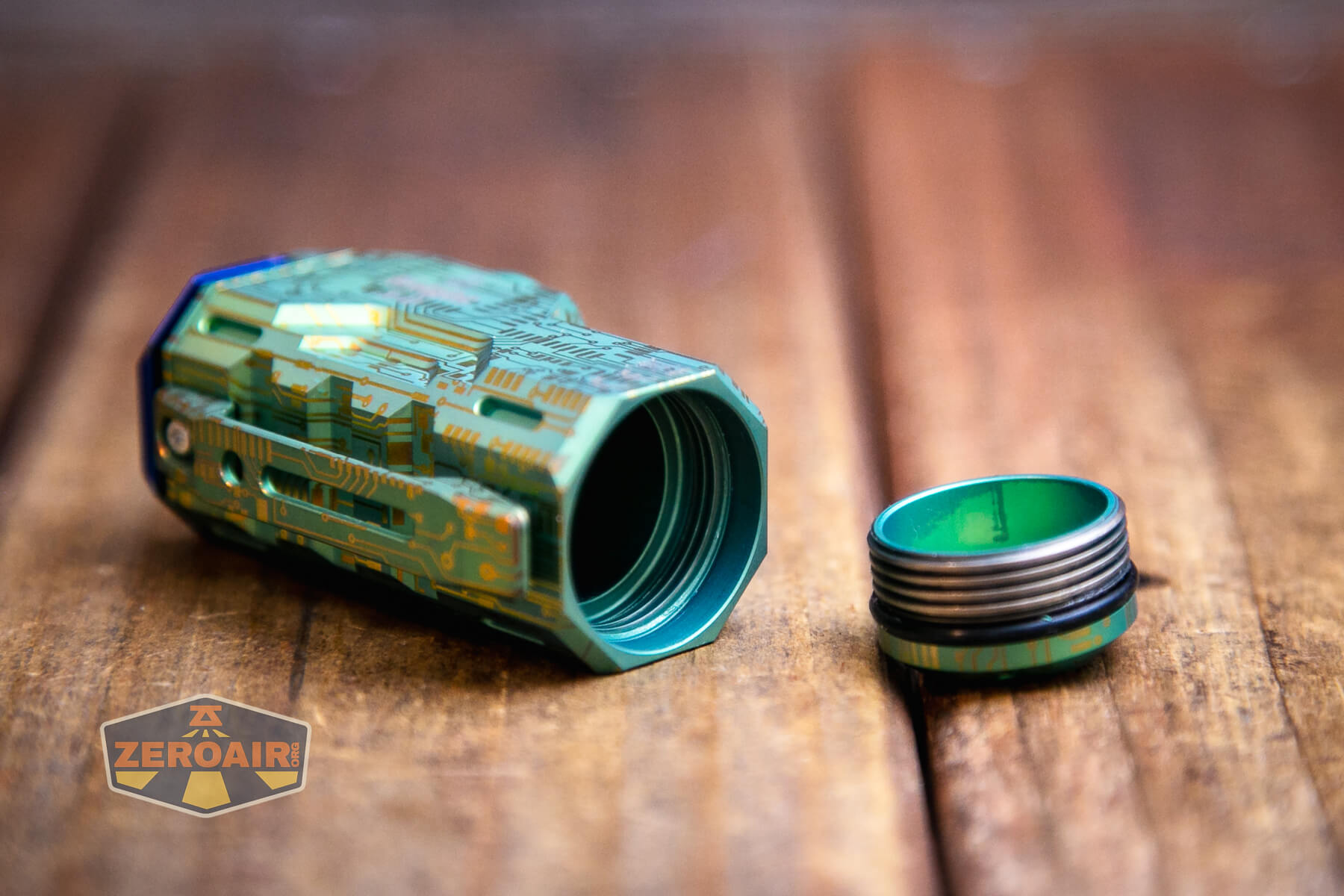 The tailcap is removable. The Wuben X-0 Knight is a “right-angle” titanium flashlight. This tailcap was a point of contention for many users who feared that the (standard!) 18350 used in this light was not replaceable. It is very much replaceable. I don’t even think you really need any special tools to remove this tailcap. I used a pair of (plastic!) tweezers, but the threads are smooth enough and the closure is “clean” enough that you could use a makeshift probably nearly anything – a paper clip, for example. Yes, you will probably not remove this tailcap by hand, but no, you won’t need a watchmaker’s case back removal tool!