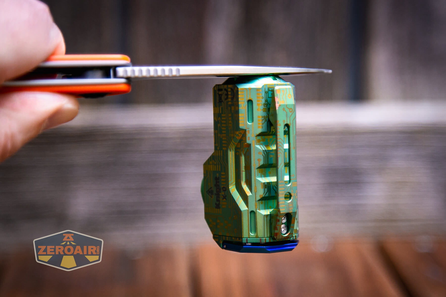 There’s also a magnet, which I mentioned above. The magnet is strong enough to hold the Wuben X-0 Knight titanium flashlight in any orientation.