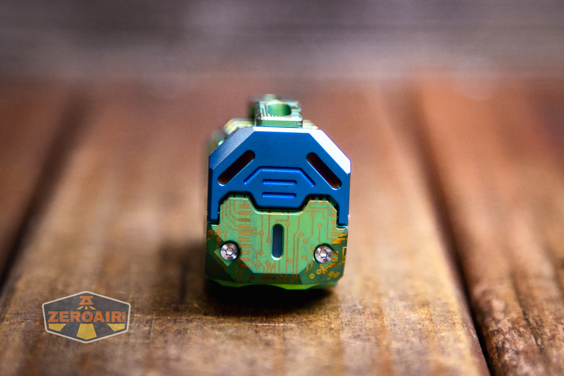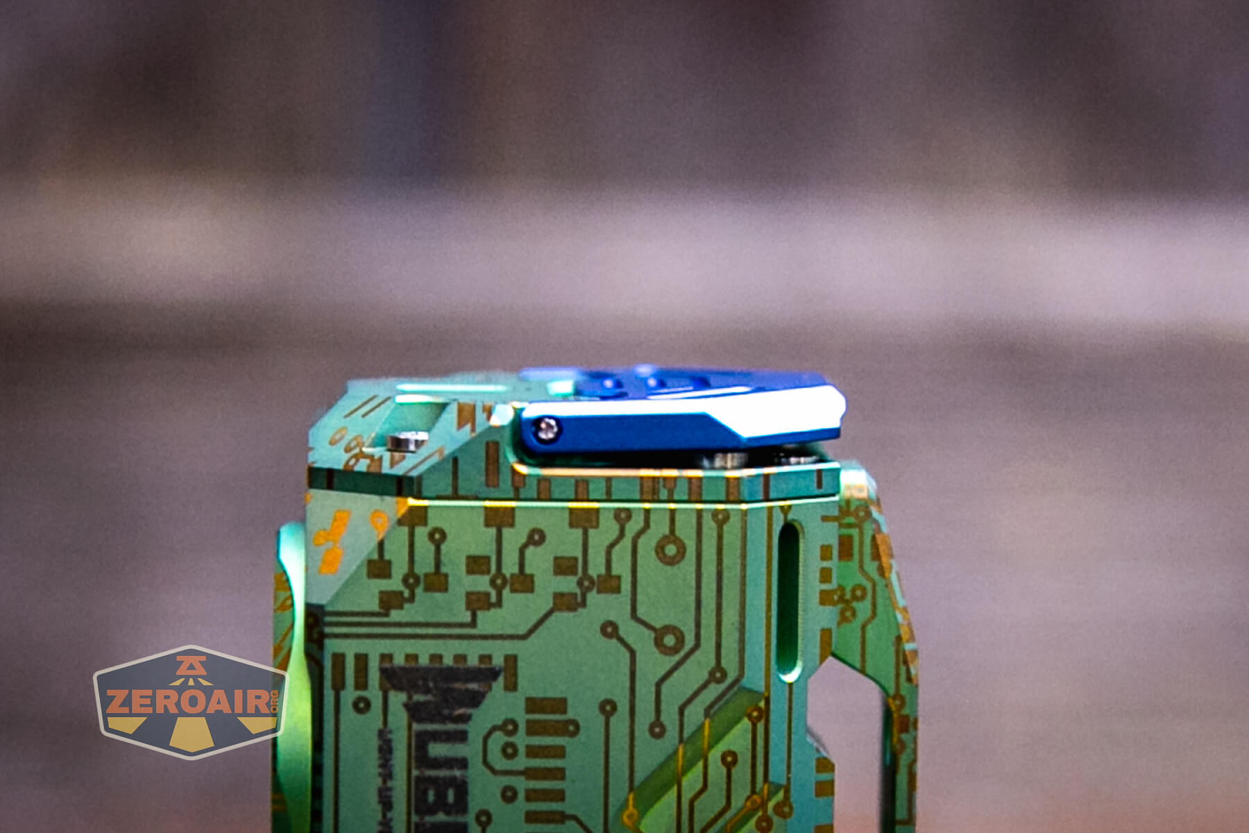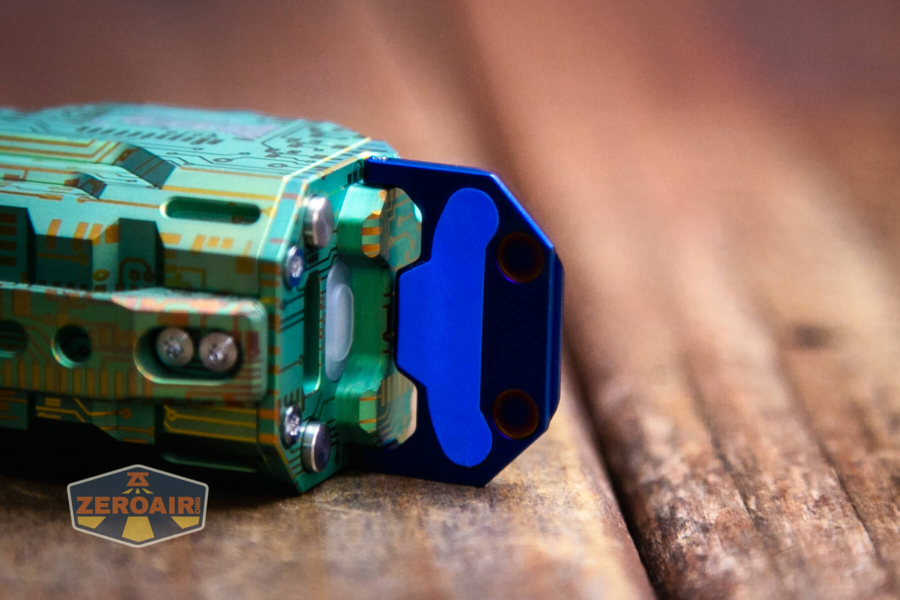 Unlike many of the other versions, this clip has the exact same engraved “circuitry” as the body. Most other versions have a pocket clip in blue that matches the switch hinge.