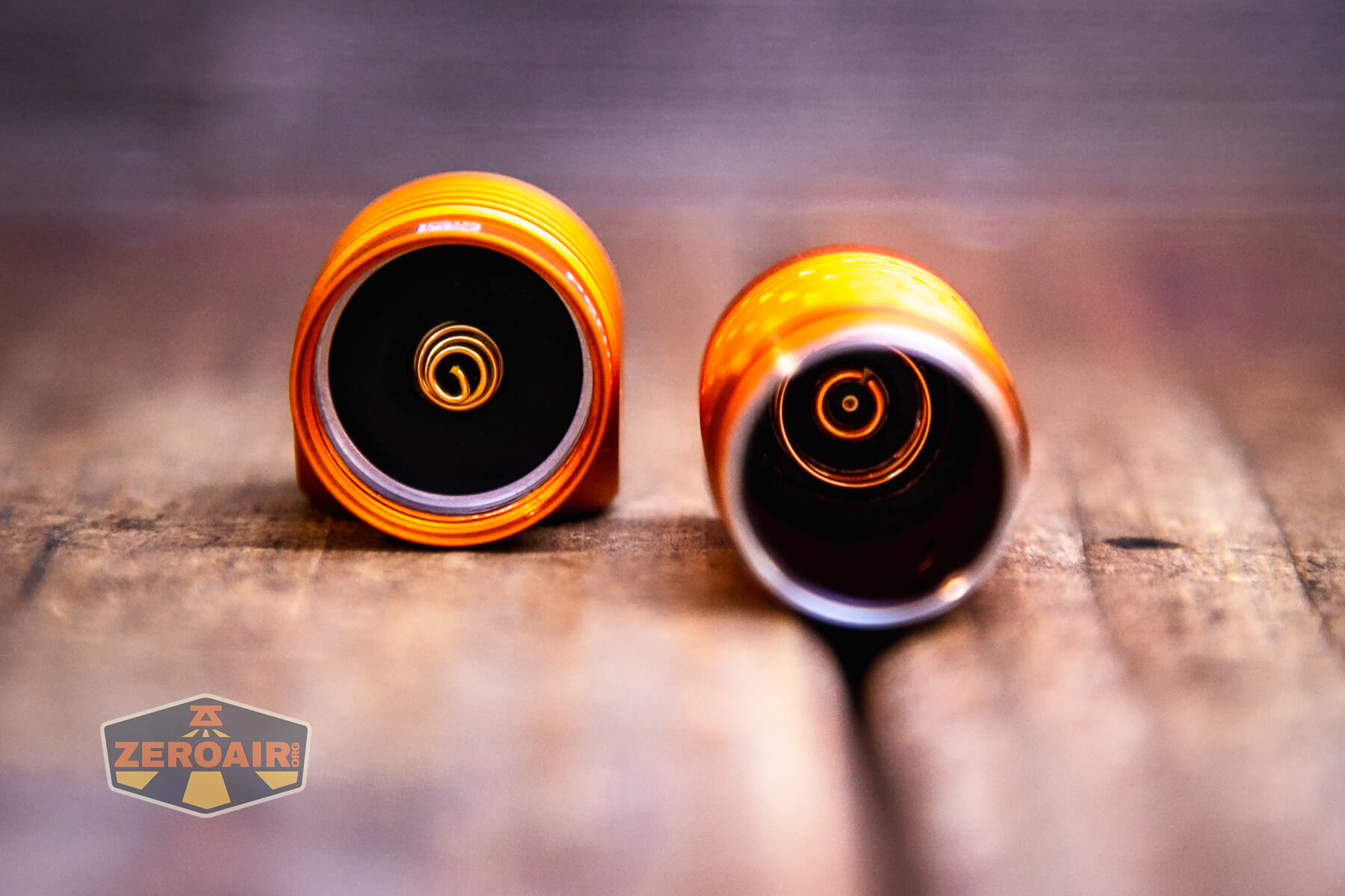 The head end has a short spring and a rubber gasket. That gasket more or less prevents the cell from being installed incorrectly. What’s inside the tail there are contacts for both positive and negative, and are springy.