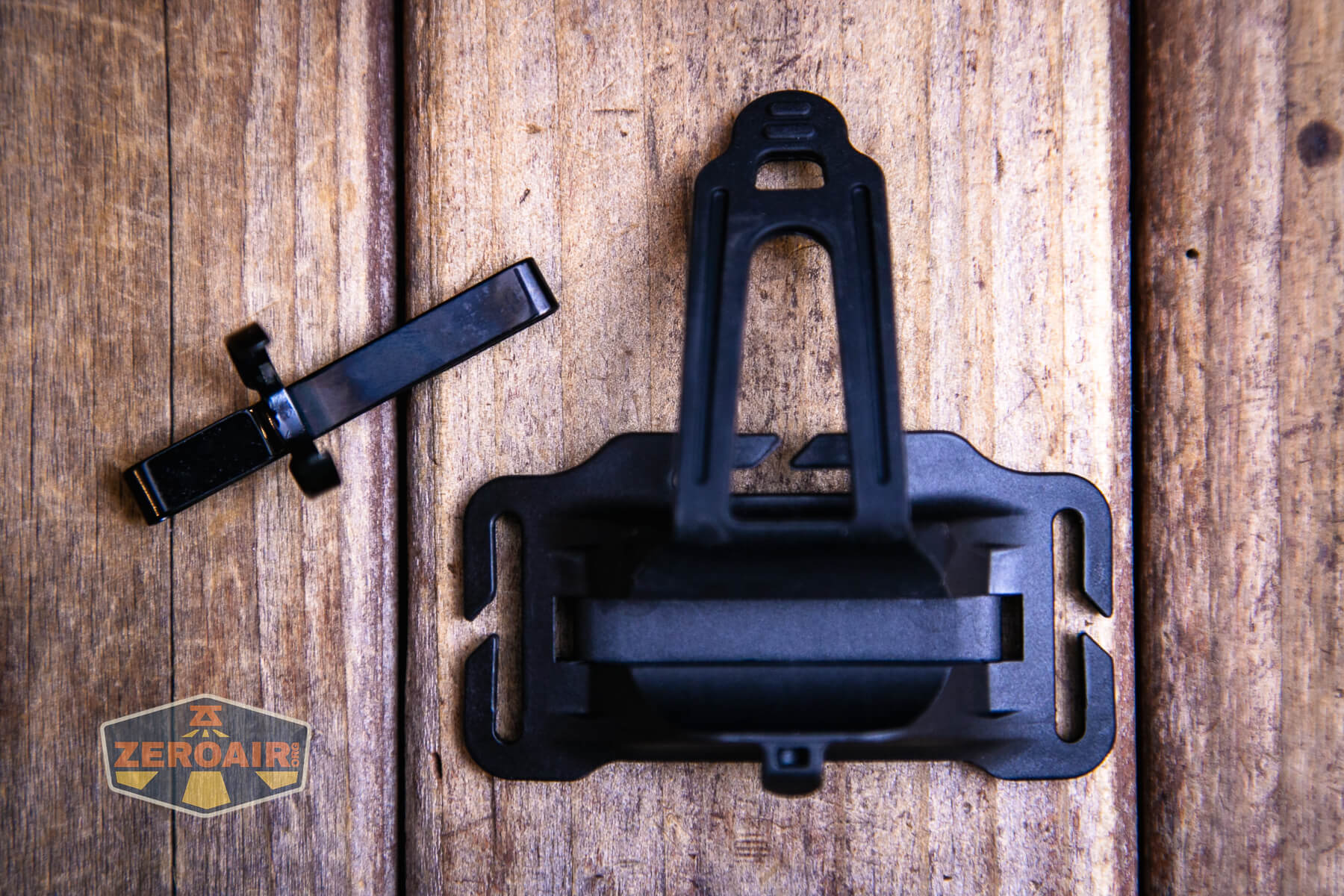 Since it ships attached to the light, let’s talk about the pocket clip first. It’s a black friction-fit “two-way” clip. The clip has a little lanyard hole in the shoulder, too.
