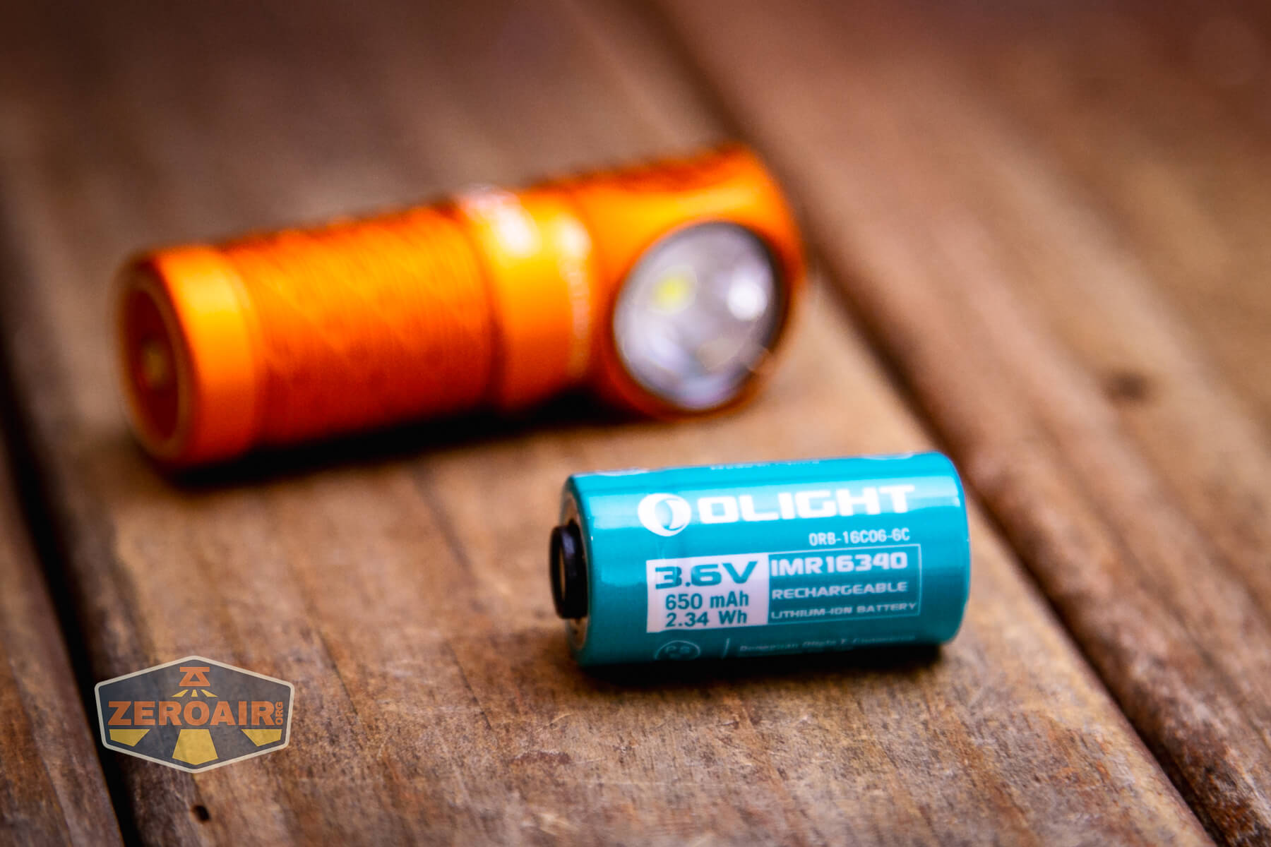 Olight includes the cell required for the Perun Mini. It’s a “customized” 16340, with a claimed 650mAh. “Customized” in this case means the positive is in the usual place, but there’s a ring of negative surrounding that.