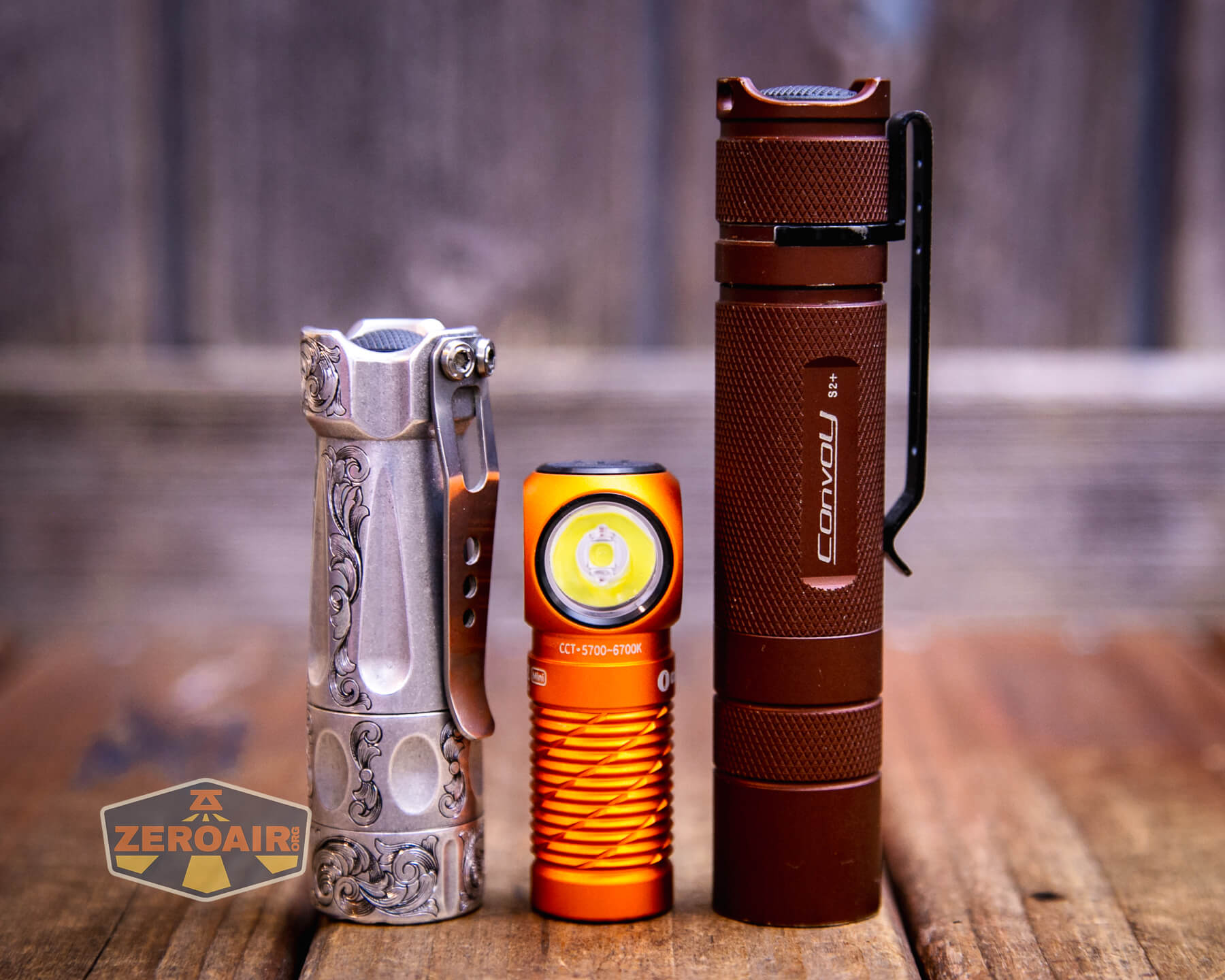 Also above is the light beside my custom engraved TorchLAB BOSS 35, an 18350 light. I reviewed the aluminum version of that light in both 35 and 70 formats.
