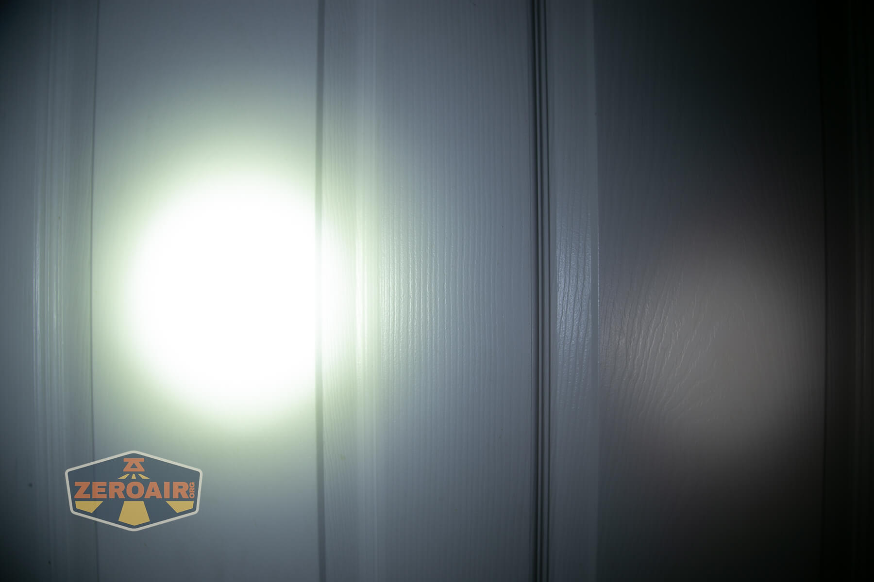 Here’s the test light with the venerable Convoy S2+. Mine’s a custom “baked” edition Nichia 219b triple. A very nice 18650 light.