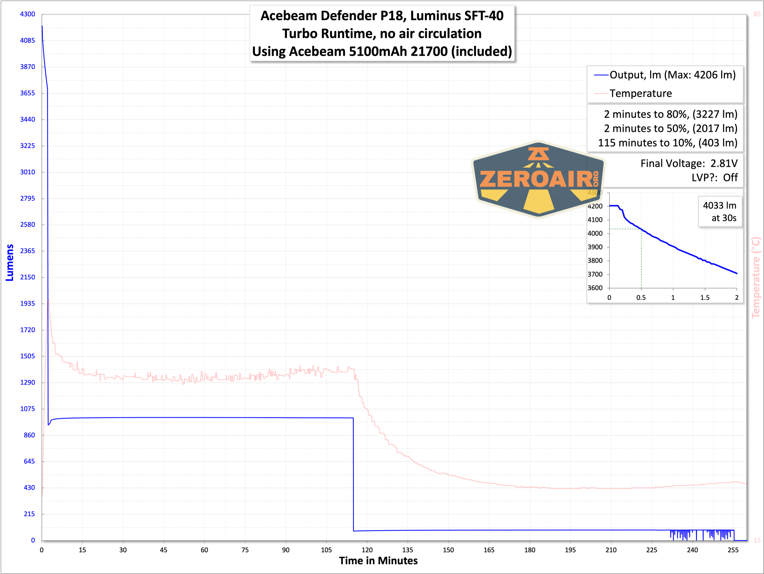 | Measured Lumens (at 30s) | 4206 (84.1% of claim)^ |