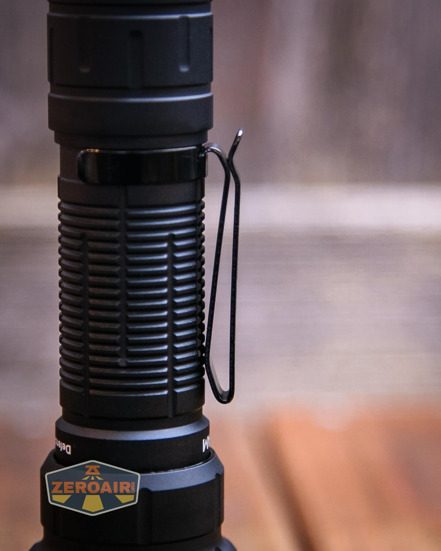 A pocket clip is included (and installed by default) with the Acebeam Defender P18 tactical flashlight. This clip is a fairly standard two-way friction-fit clip.