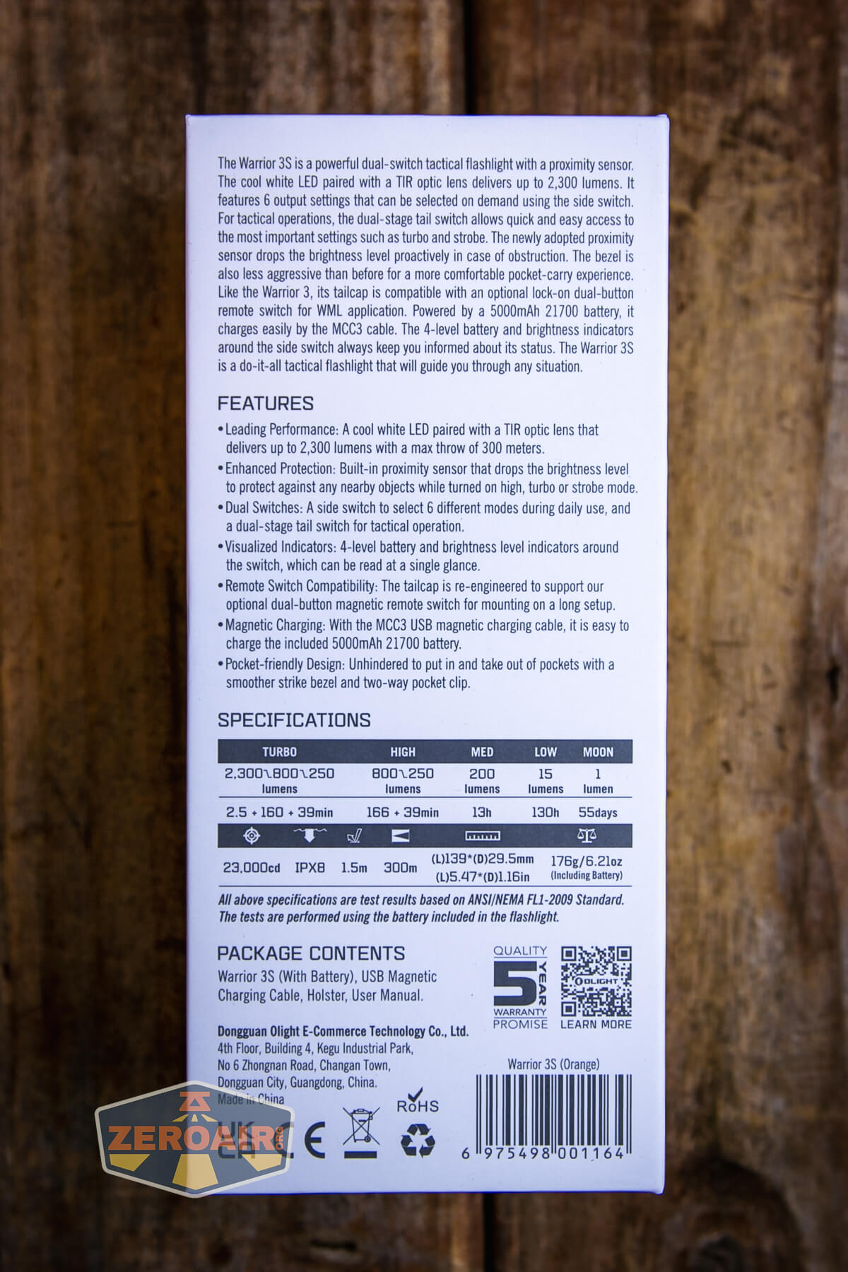 One huge upgrade that Olight has been making (and is included in the Warrior 3S) is that the proximity sensor can be disabled! Here’s how. With the light on, cause the proximity sensor to activate. Within 5 seconds from the light stepping down, double click. The sensor is now disabled for this session. Double clicking will of course enter Turbo output, but you can cycle the modes and the proximity sensor will still be disabled. Turning the light off resets the proximity sensor!