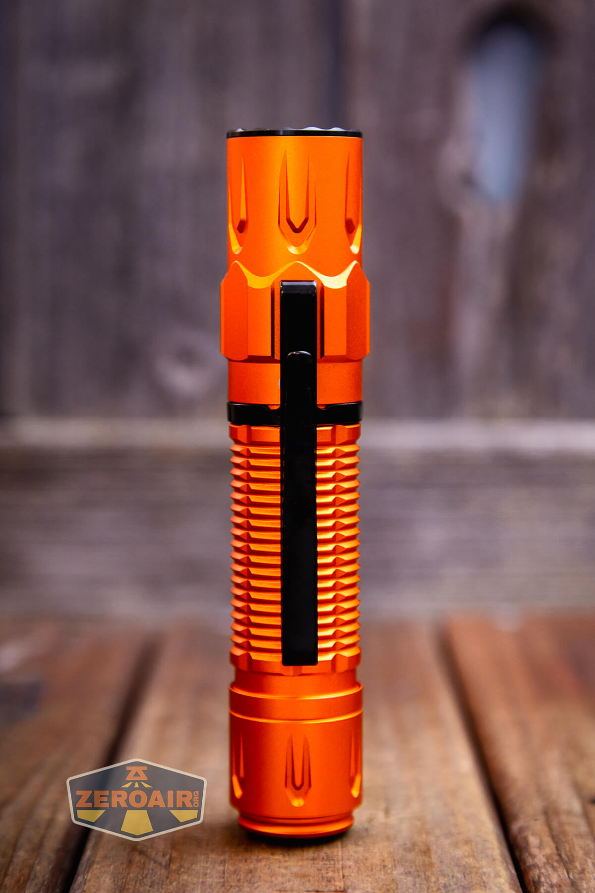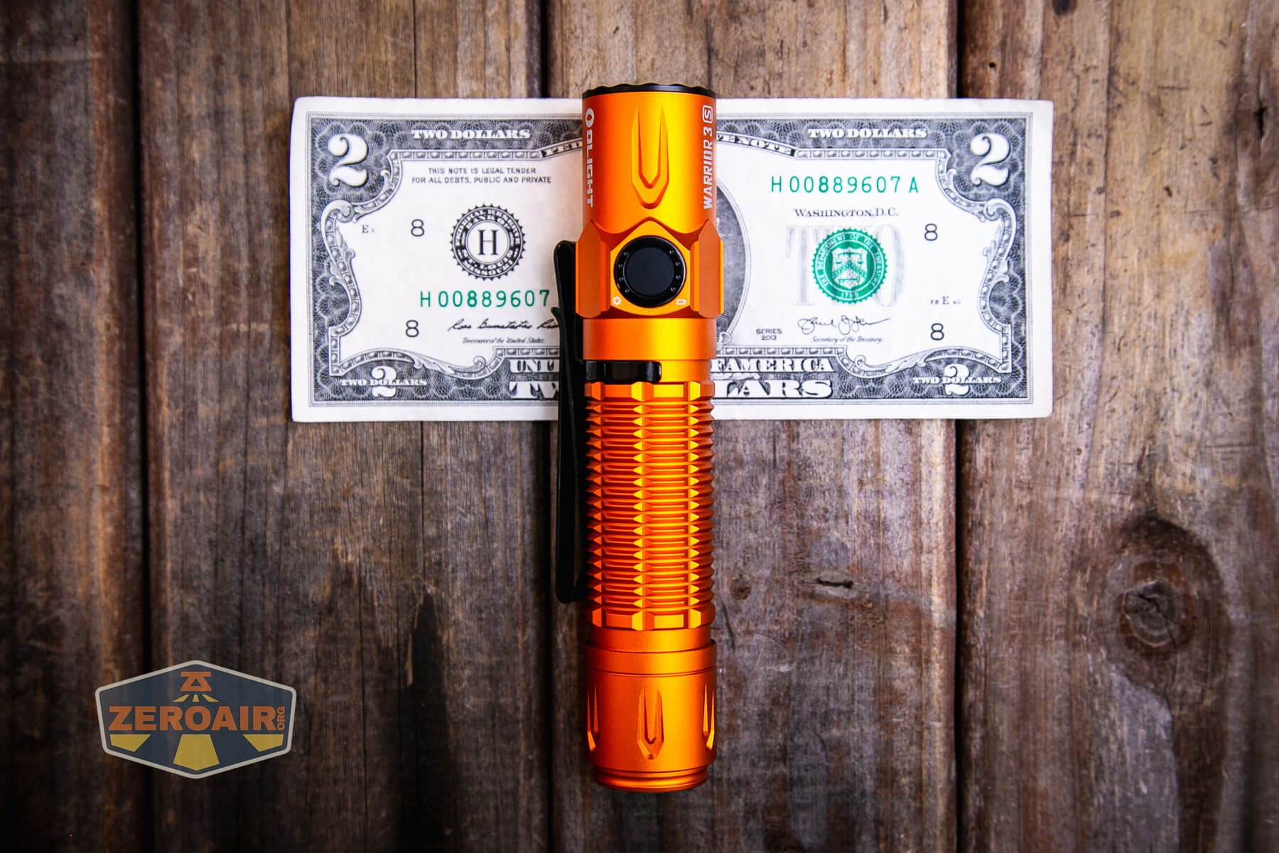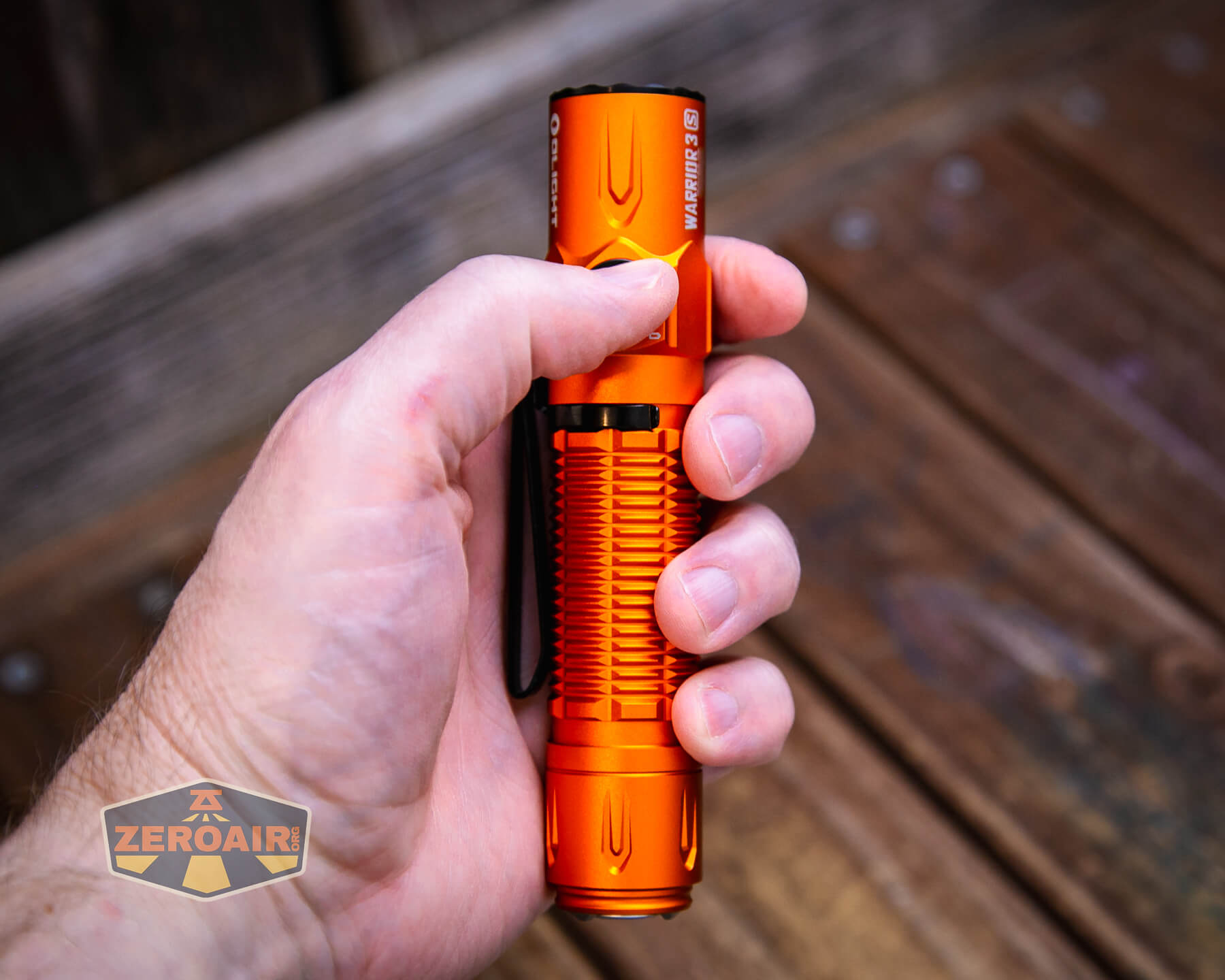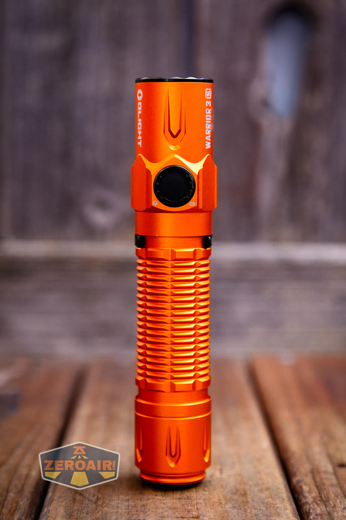 I’ve actually reviewed the black body version of this light before – here’s the review of the Olight Warrior 3S flashlight. I don’t think anything (or much?) has changed from that version to this version, except that this iteration is orange. Obviously, orange is extremely better.