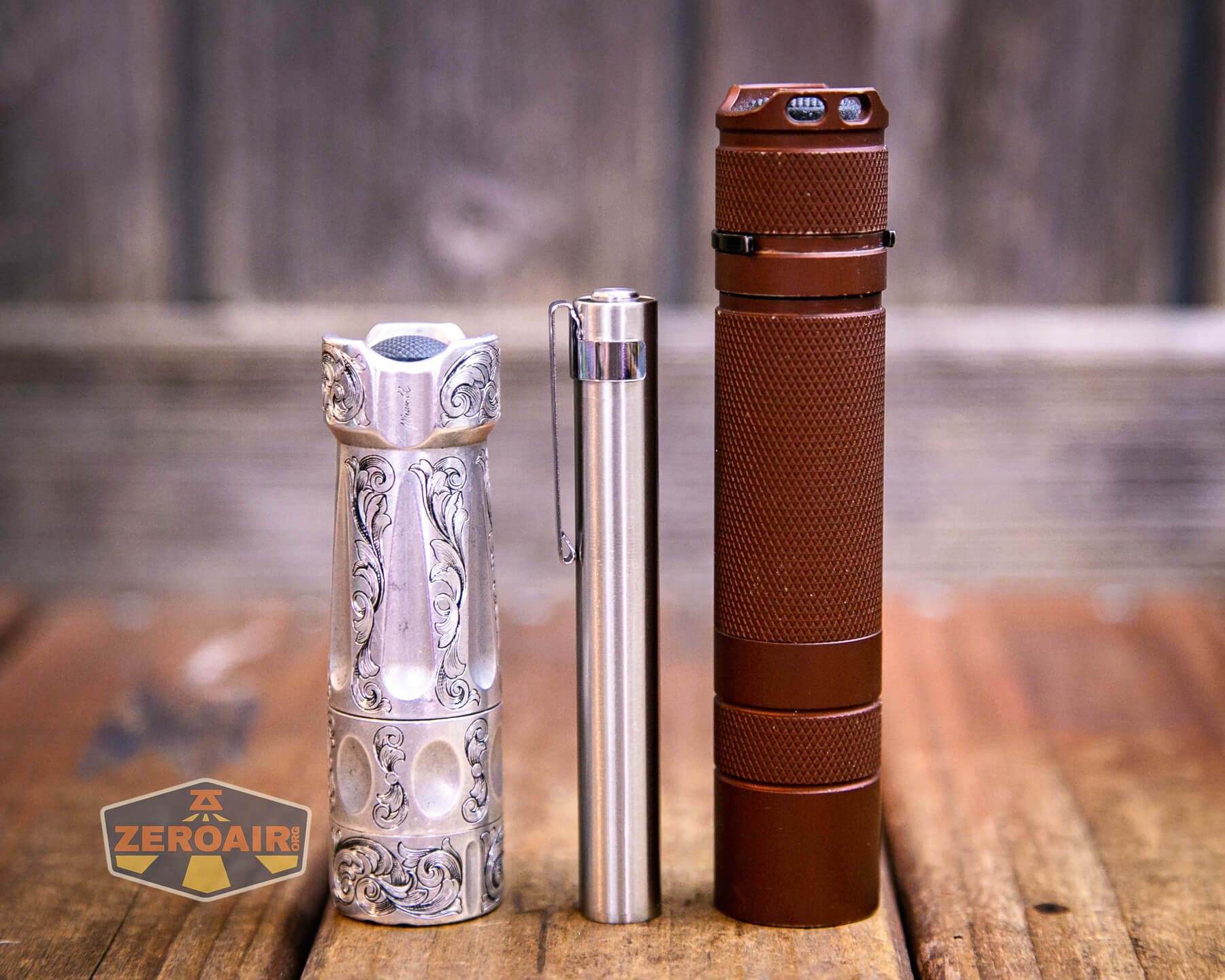Also above is the light beside my custom-engraved TorchLAB BOSS 35, an 18350 light. I reviewed the aluminum version of that light in both 35 and 70 formats.