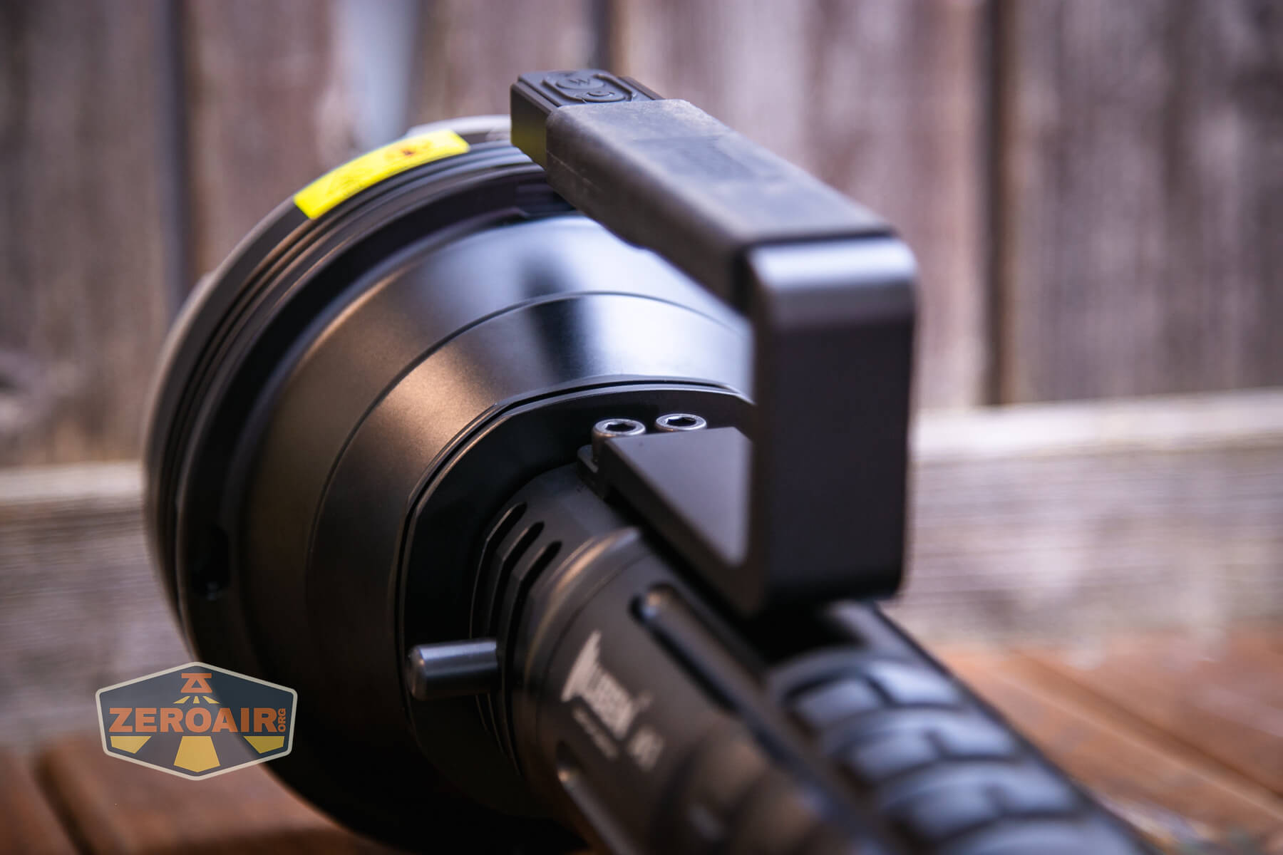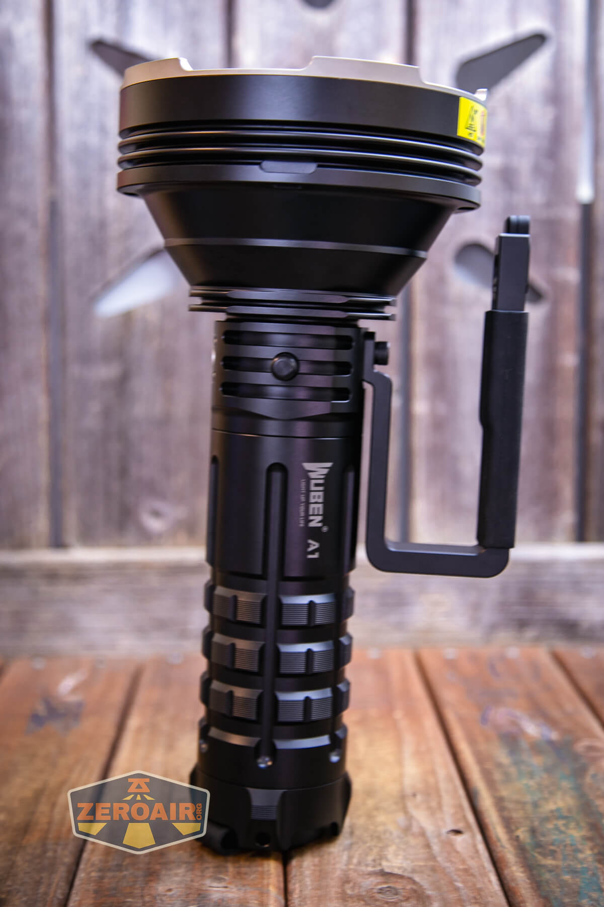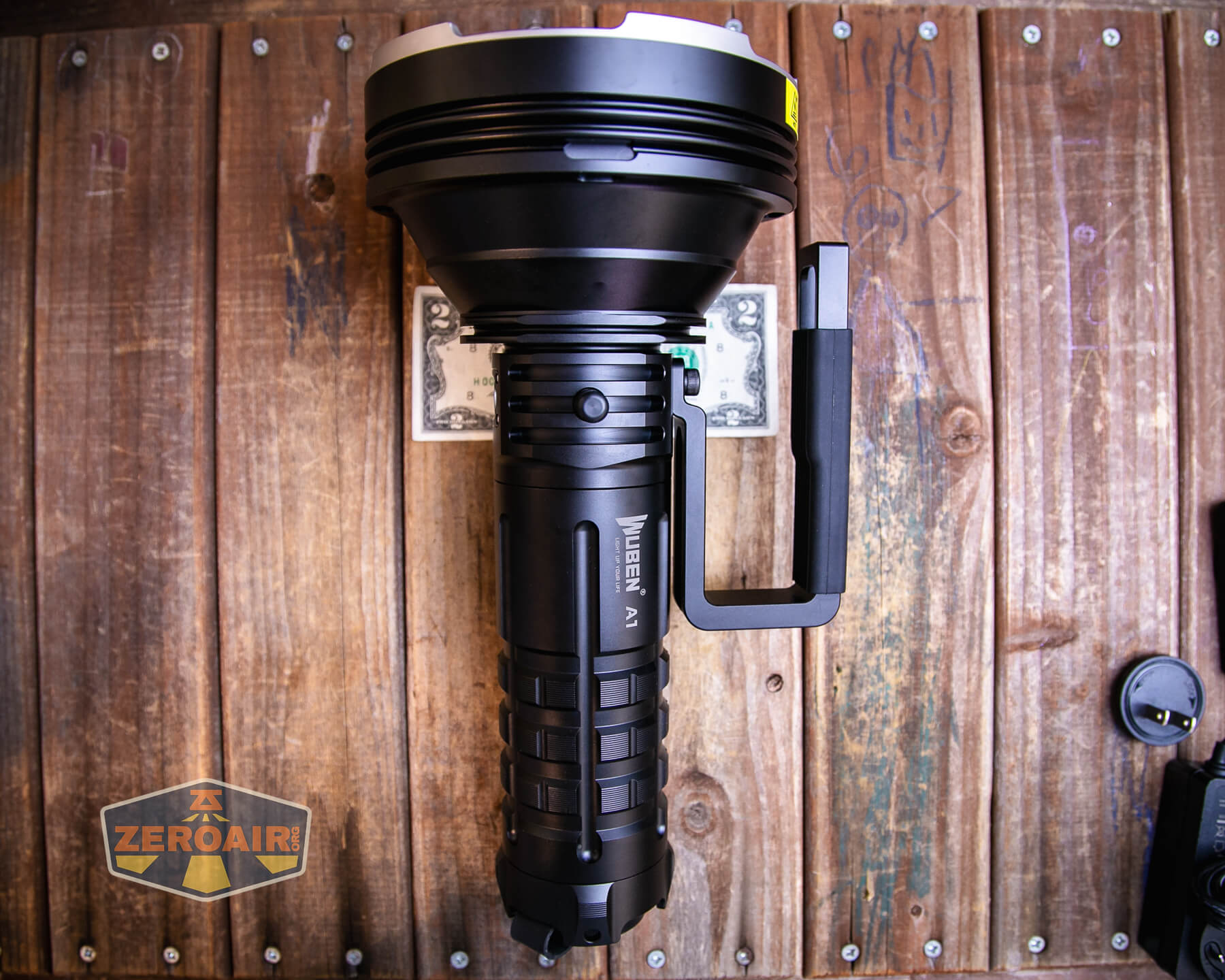The Wuben A1 spotlight is remarkably large. (More on that later, relevant to the Power section.) It’s heavy and large, but there’s a point to all that – it throws!! The build quality is great though. For example, the handle is very secure, plenty grippy, and also well balanced. It’s a very nice setup.