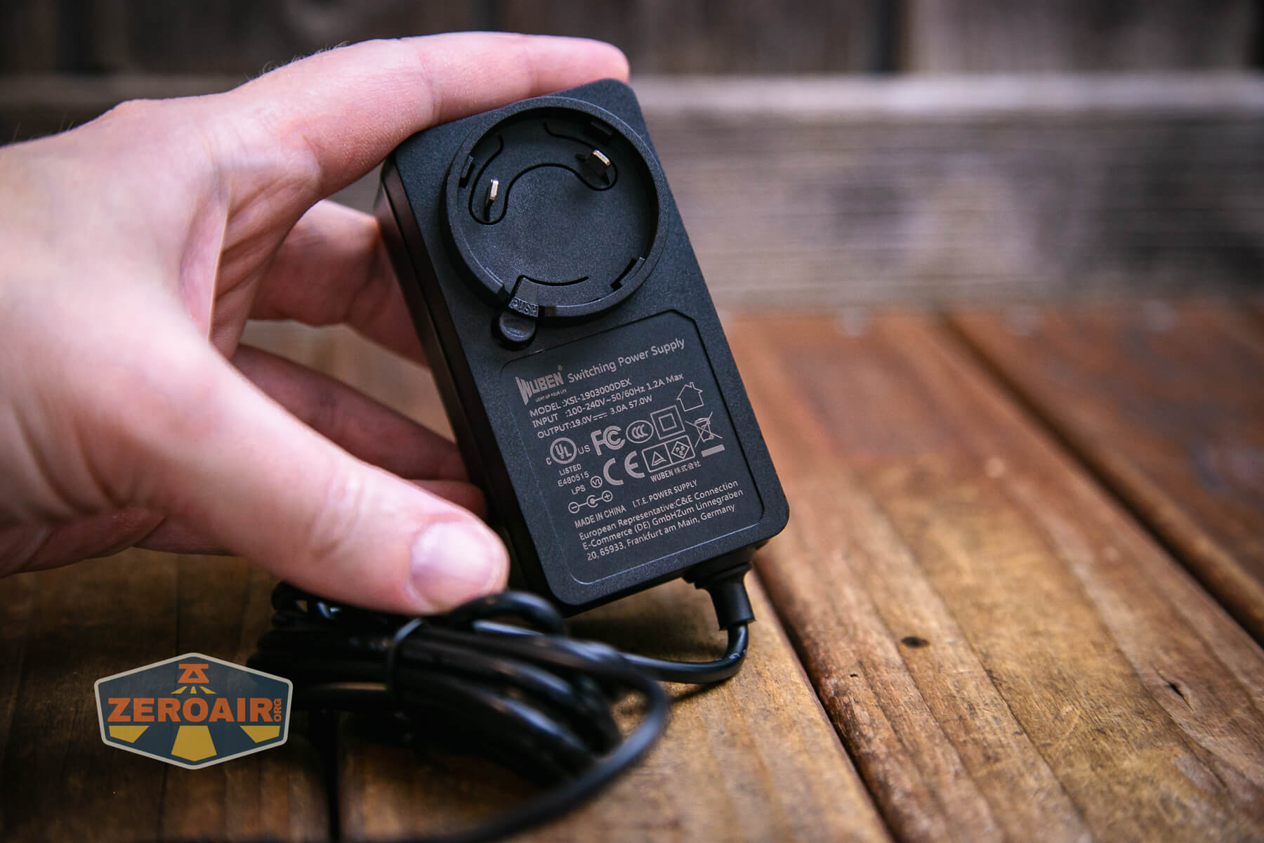Wuben includes a wall wart, which is rated for 19V and 3A.