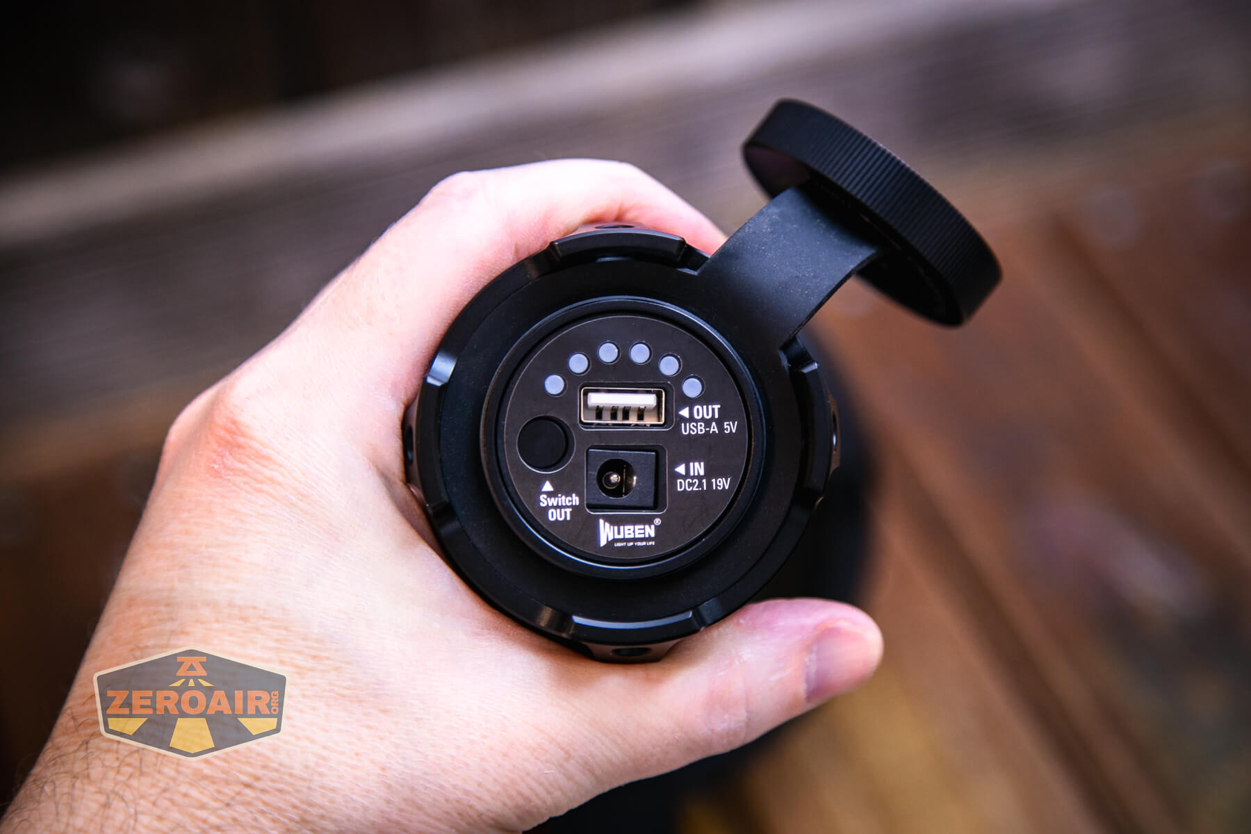 One fantastic feature of the Wuben A1 spotlight is the powerbank function. There’s a single USB port near the charging port. It’s a USB-A port. By default, this port is not “on” but clicking that little black button (labeled “Switch OUT”) will activate it.