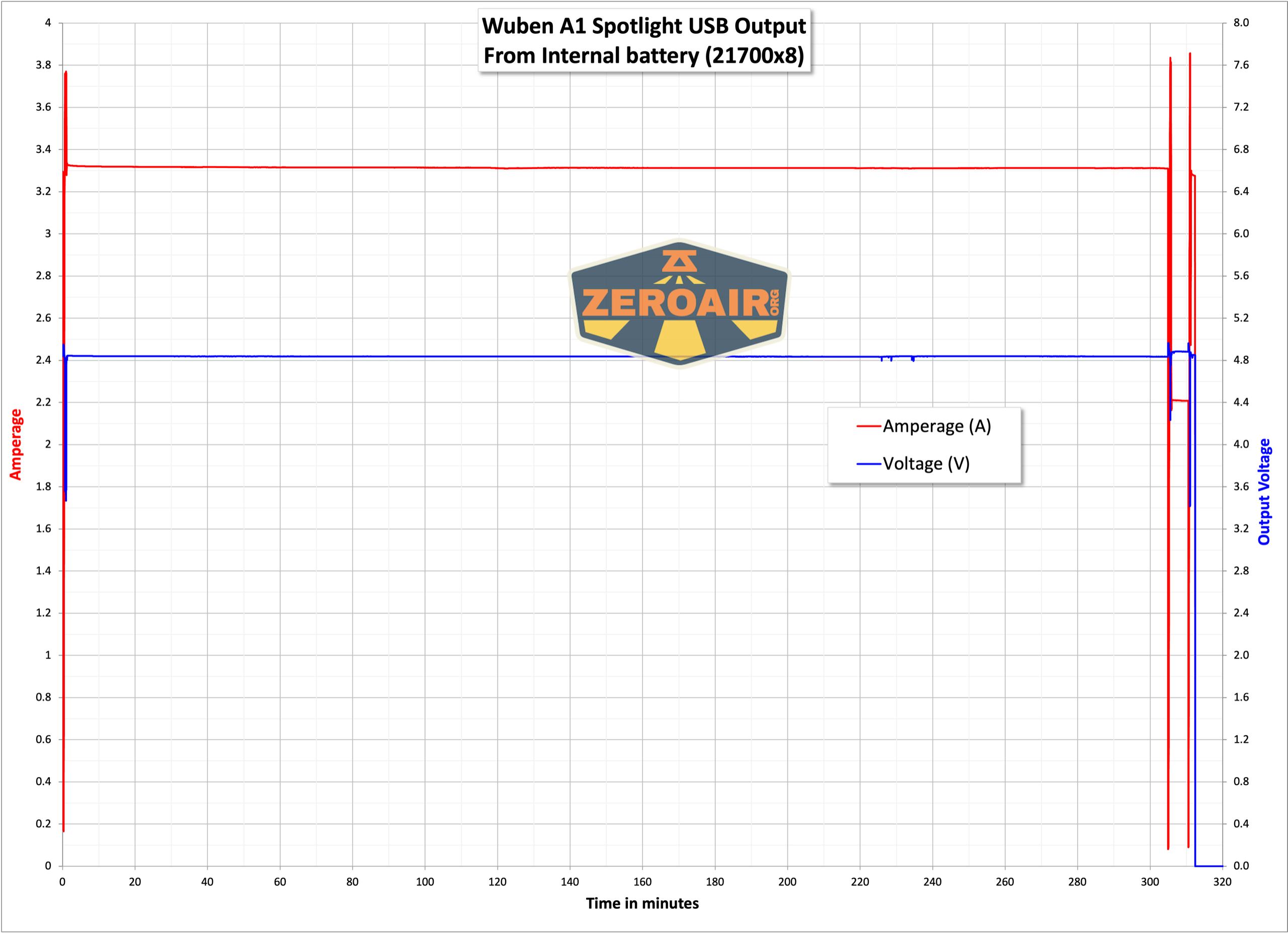 There’s a lot of power in this large battery. The output carried on at around 3.3A for over 5 hours! Plenty of power for charging a cellphone (or more).