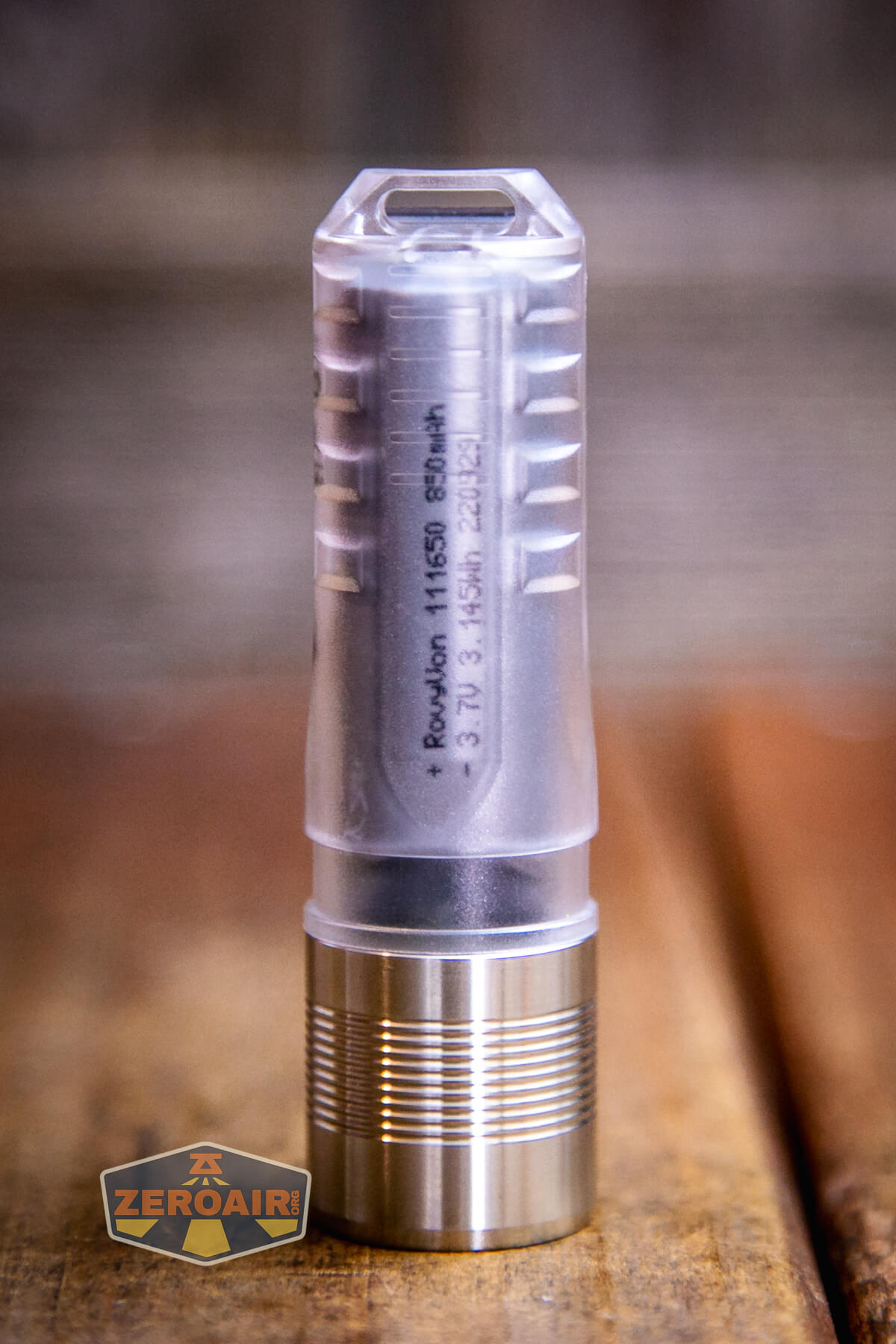 The RovyVon A28 keychain flashlight is powered by a built-in lipo battery. The battery is an 850mAh battery, connected through a little JST-style connector.