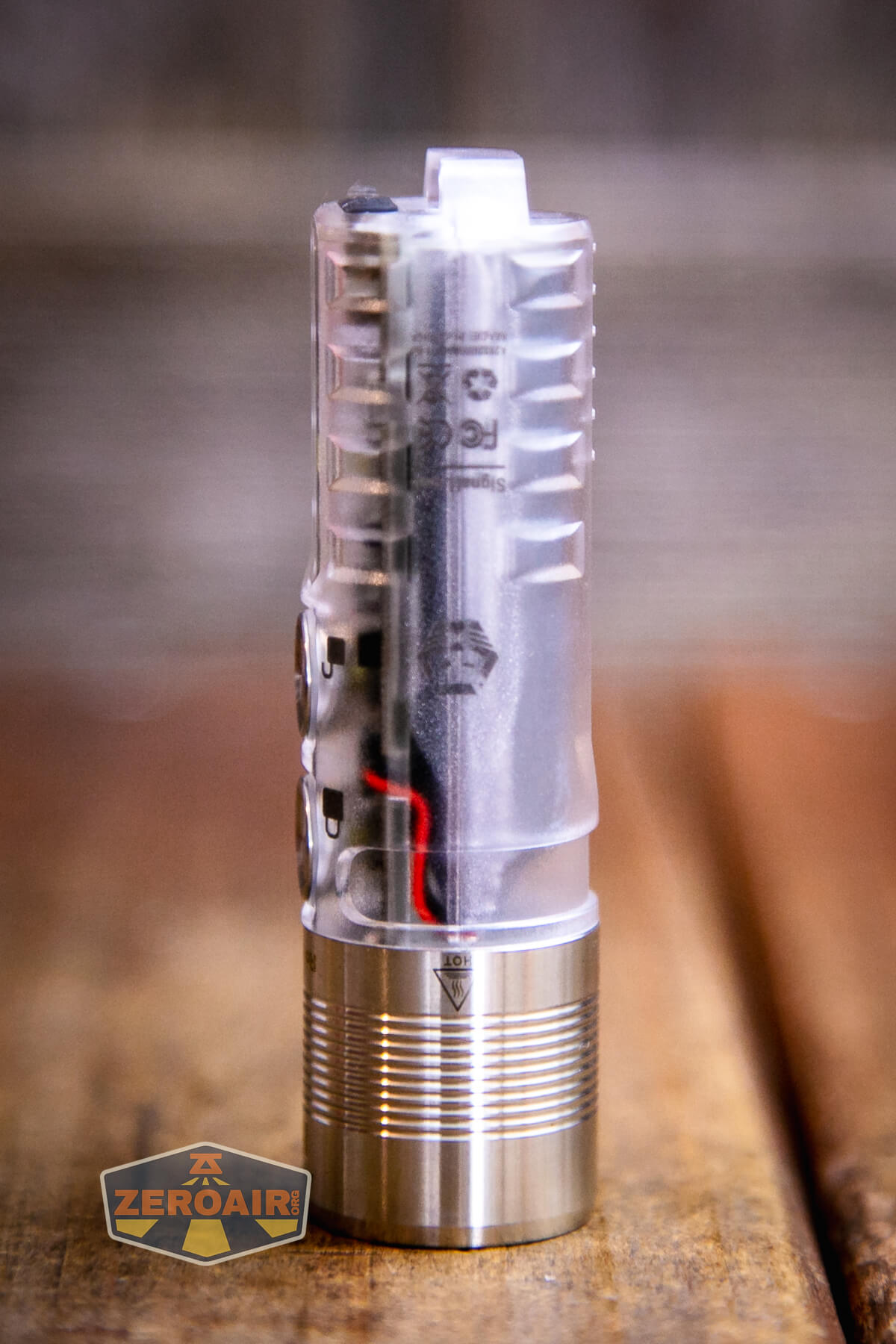 Also above is the light beside my custom-engraved TorchLAB BOSS 35, an 18350 light. I reviewed the aluminum version of that light in both 35 and 70 formats.