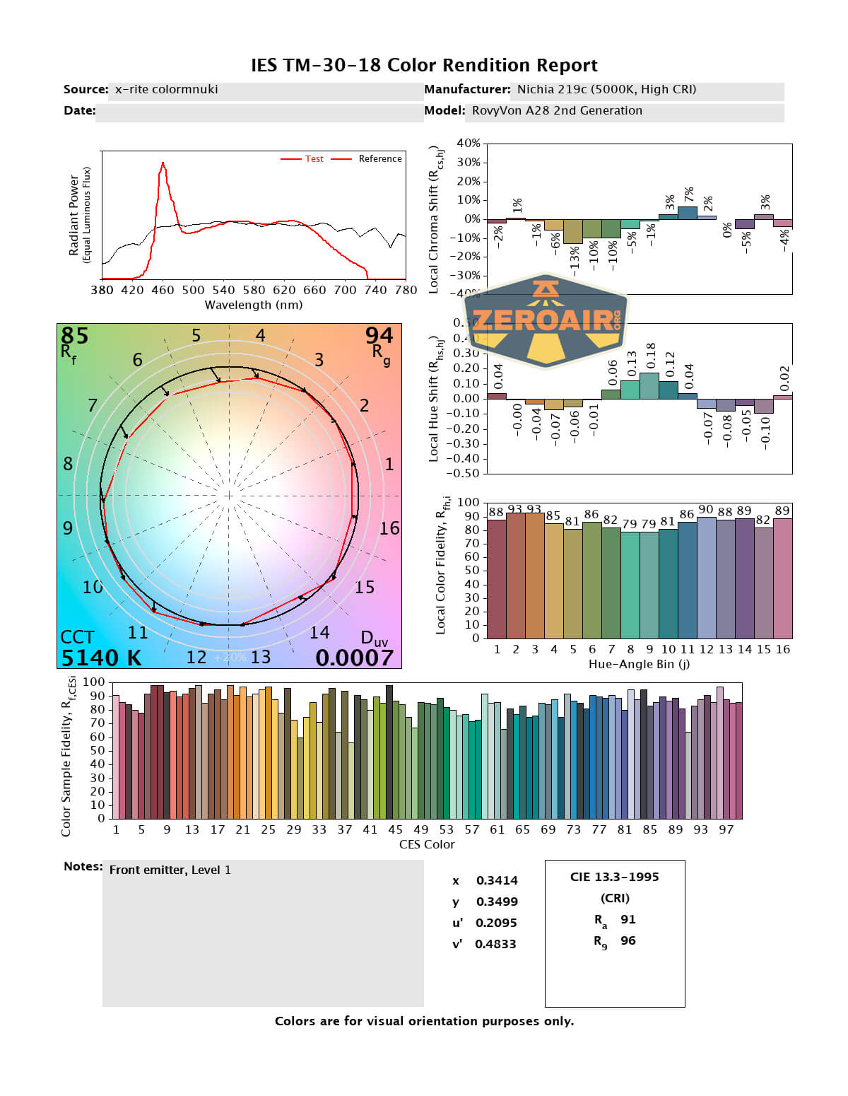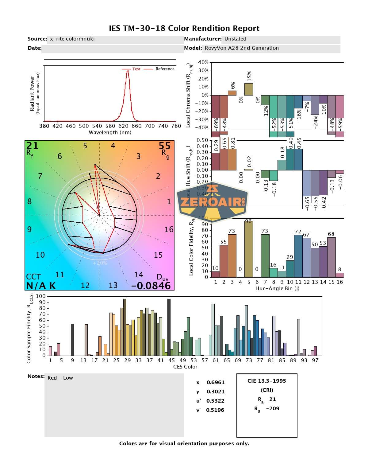 LED Color Report (CRI and CCT)