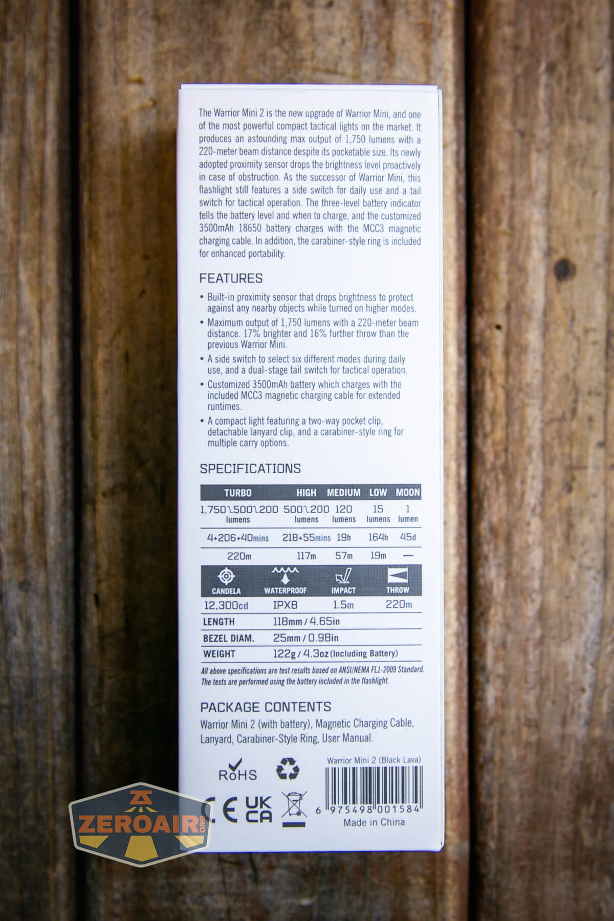 While I’ve reviewed other Warrior Mini 2 flashlights, this one has a new colorway and was subjected to all the usual testing. I really like the Warrior Mini 2 lineup, and this black lava is a neat new entry.