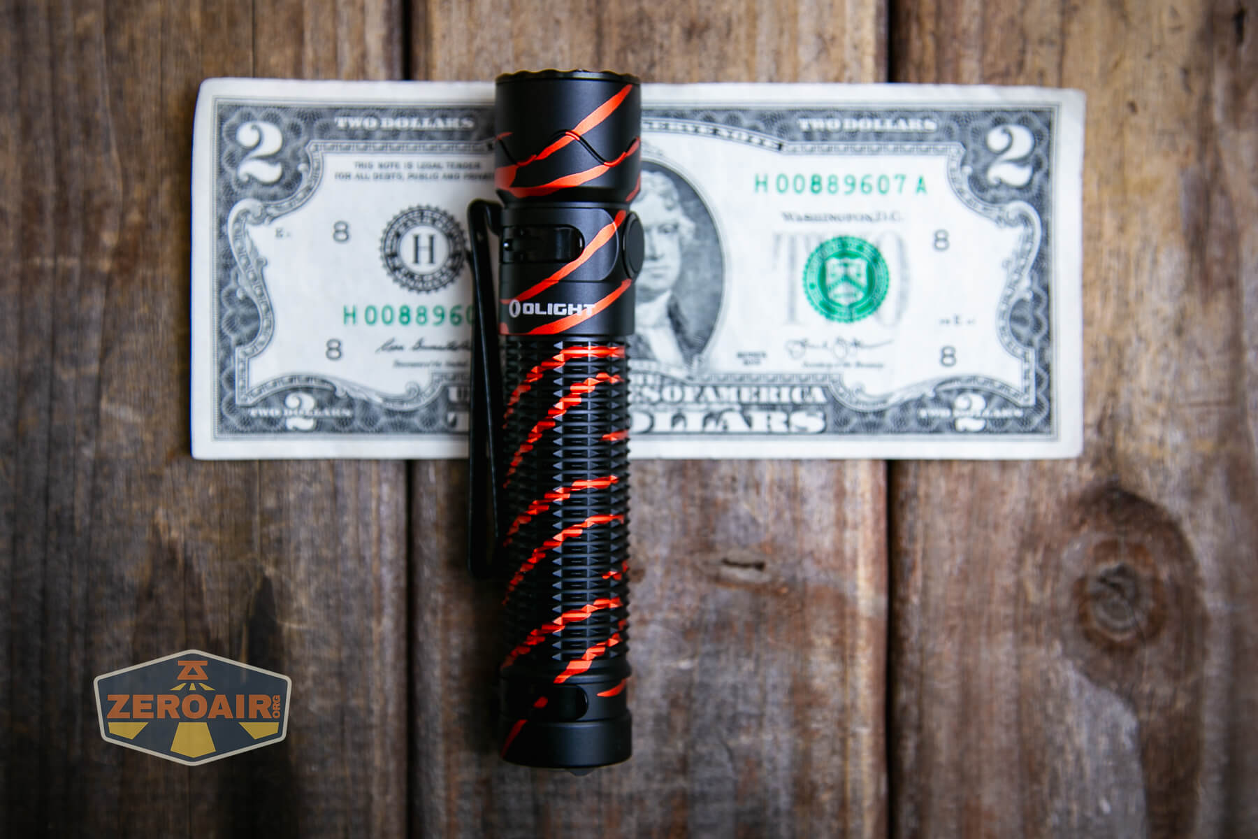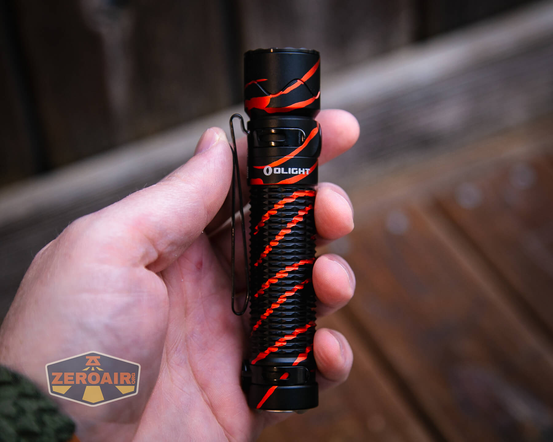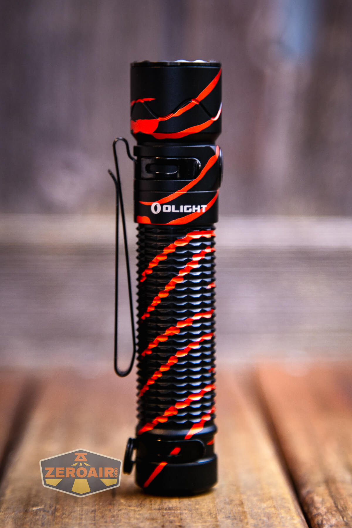 A pocket clip is included and attached from the factory. This is a “two-way” clip and has seen some improvements over previous generation Olight two-way clips.