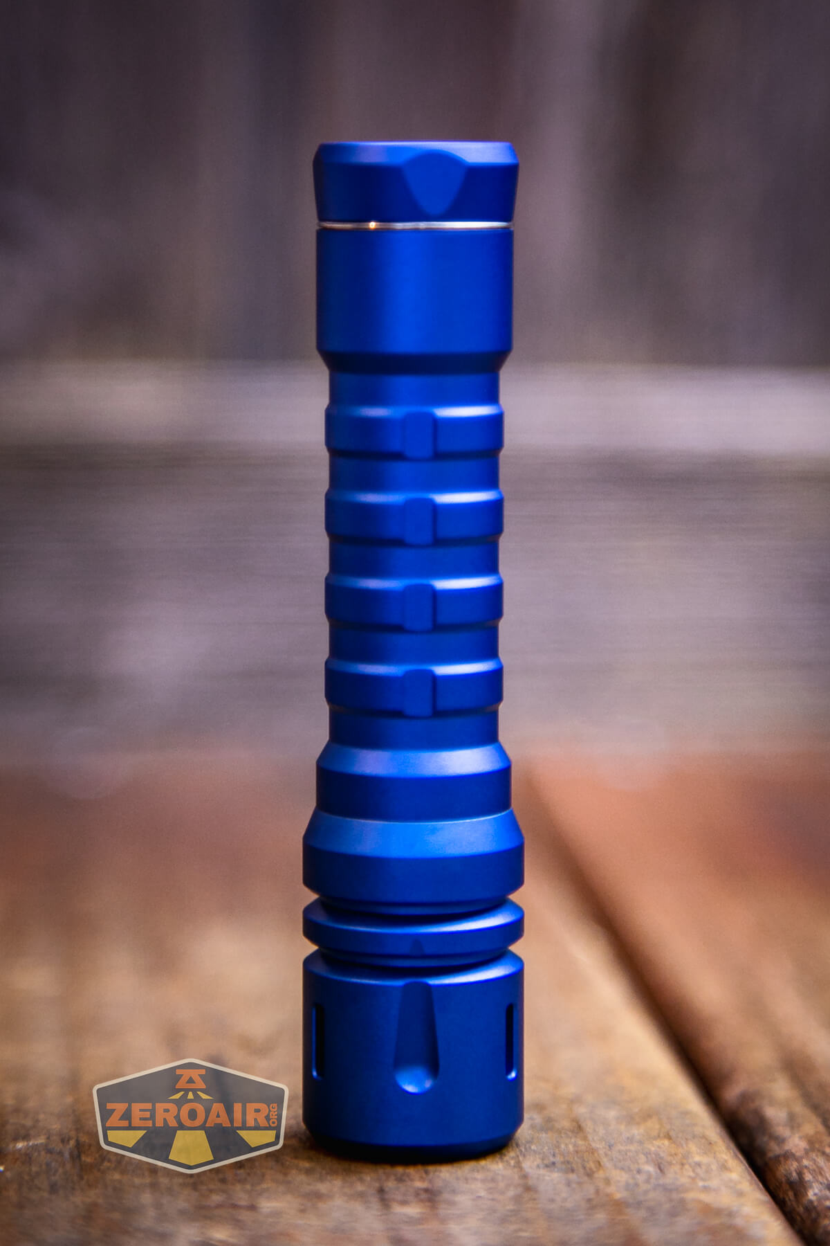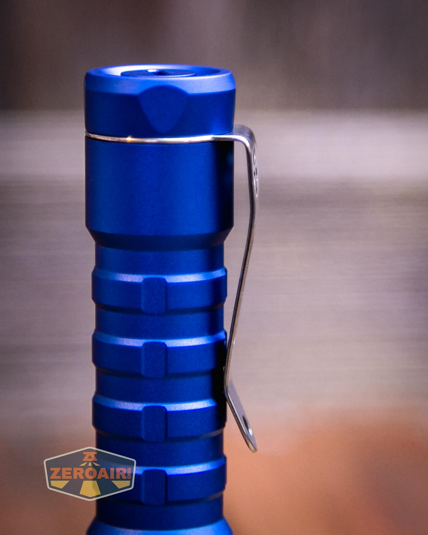 Seen here in blue, there are other colors of the ReyLight LANapple aluminum flashlight available – red, purple, and grey. I believe the LANapple has also been available in titanium, and a Timascus / ZircuTi / CrystallizedTi) (w/trits) has been available at some point, too.
