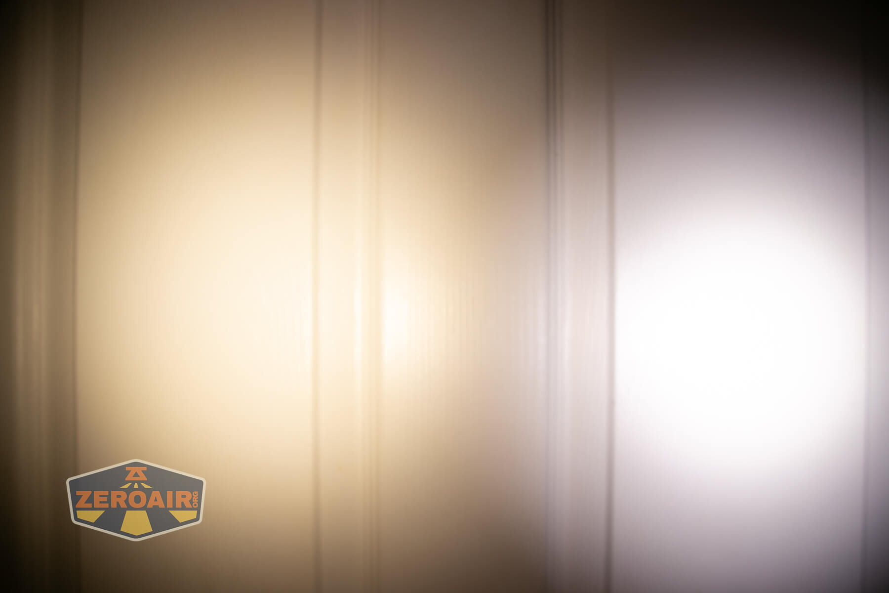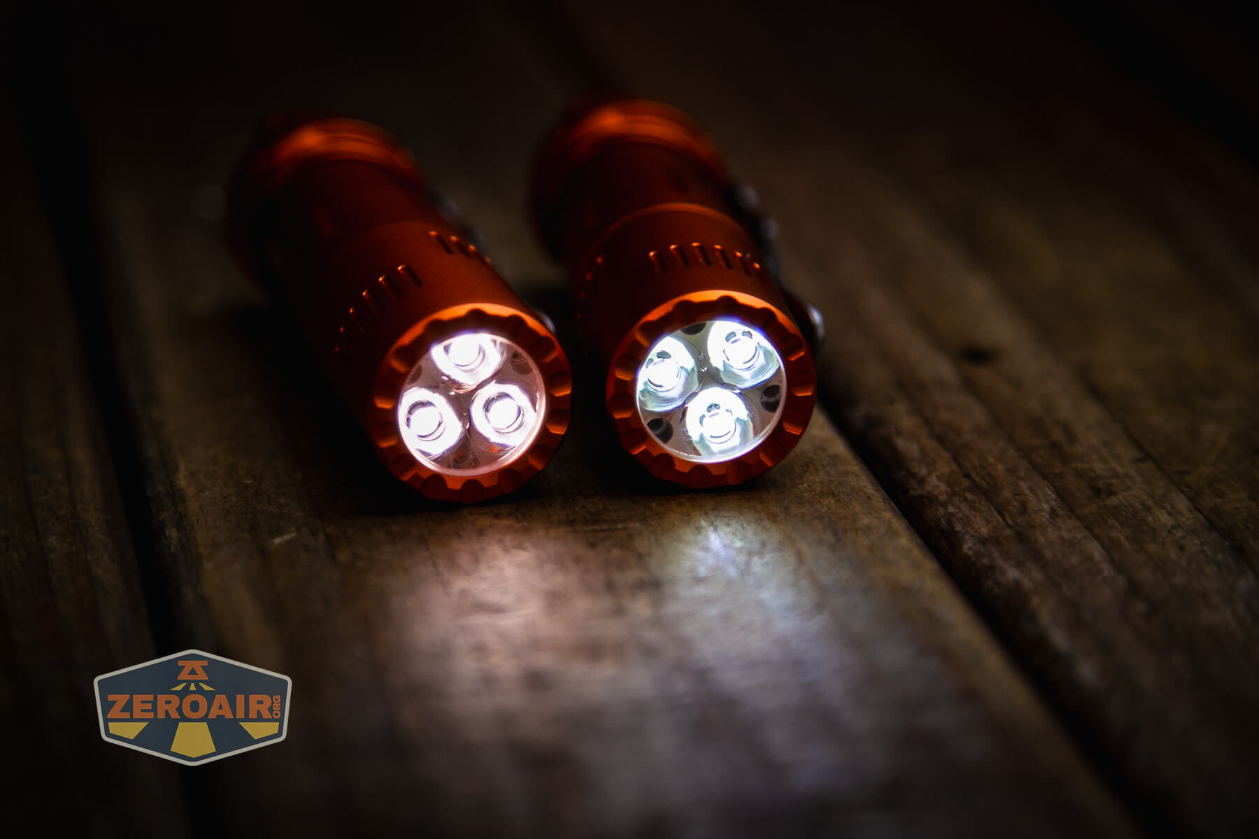 The Nichia version is warm white and also higher CRI, but much more floody. I am not sure if the Cree throws more simply because of the difference in emitter or if it’s also coupled with a different optic, but the beam profile on the Cree version is much tighter than the beam of the Nichia 519a.