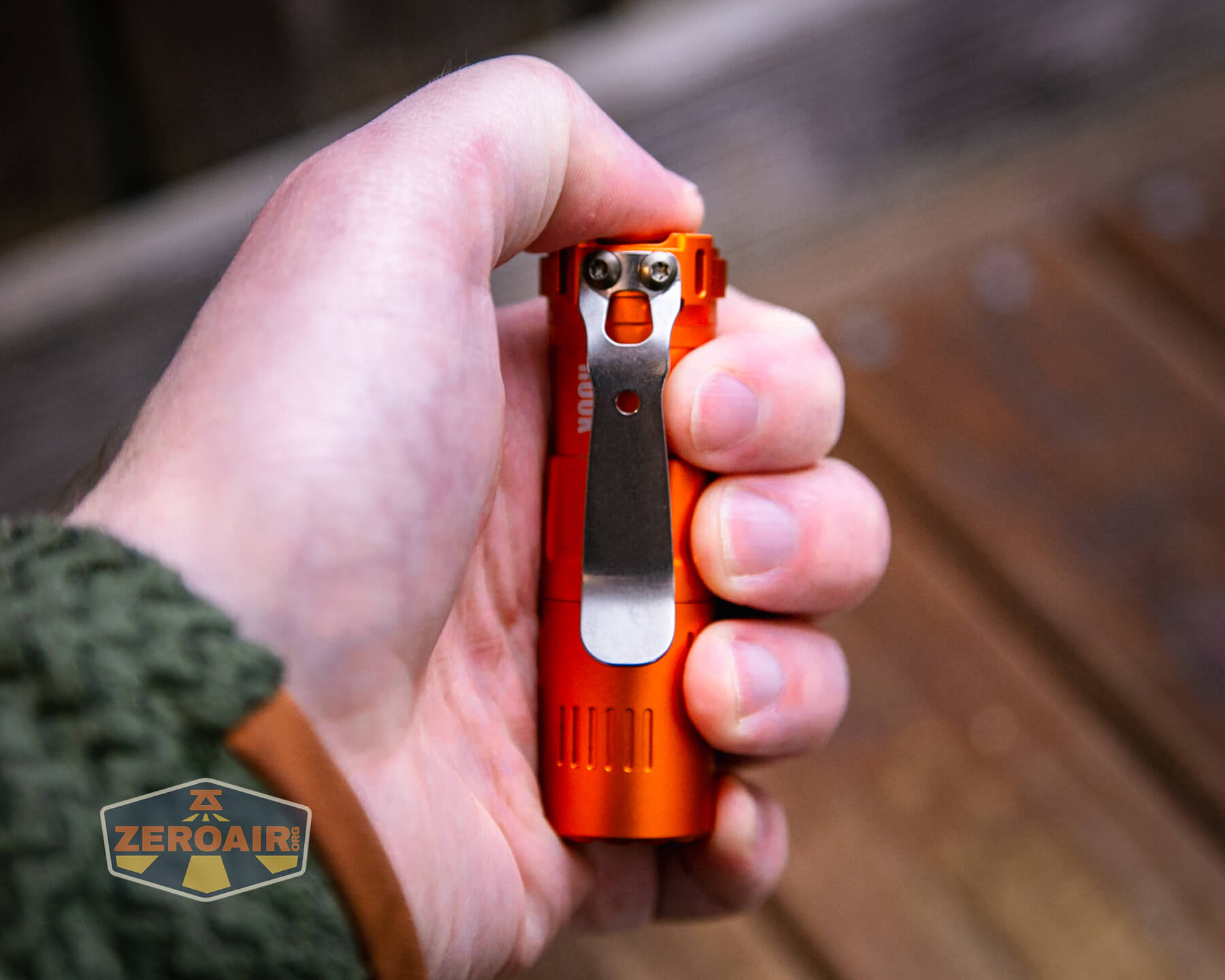 This is a fine clip, and it’s a clip ReyLight has used on many lights before (Dawn, Krystal). It’s a beefy clip with a big mouth. It attaches with two Torx screws. All in all, a solid clip.