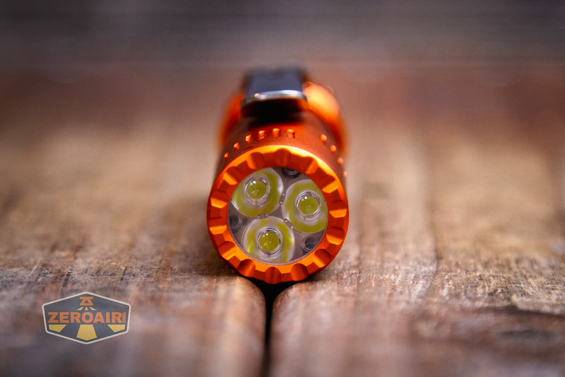 A couple of options are available (at least for the orange body, and at least at some times when they’re in stock). A Cree XP-L HI option is available and commands a $5 premium. Cree is the higher output option and also has a much tighter beam.
