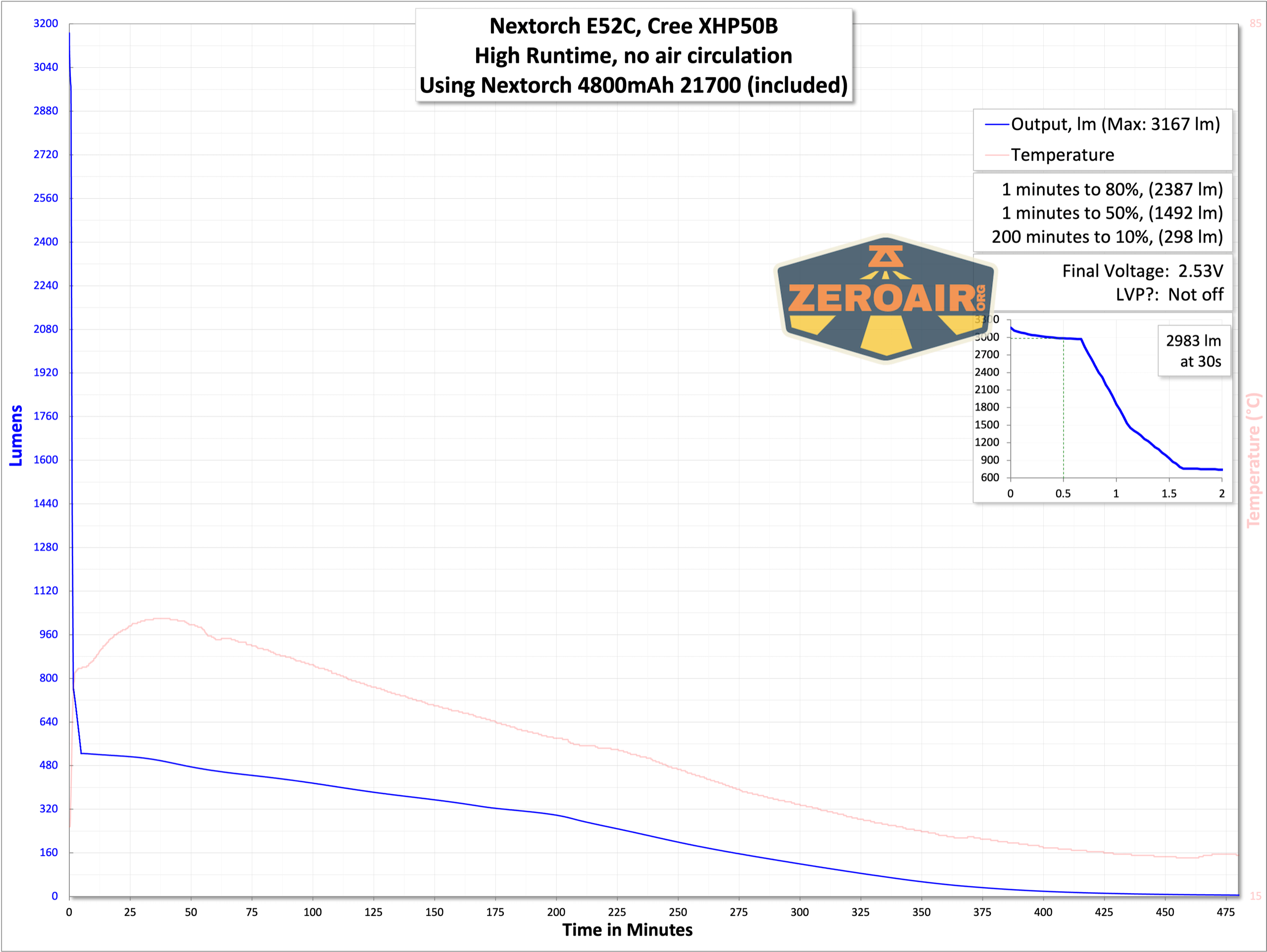 Below are a couple of runtime tests. I’m disappointed by how quickly the light steps down from High. Not just that, but it steps down to a fairly low level – the same level as Medium.
