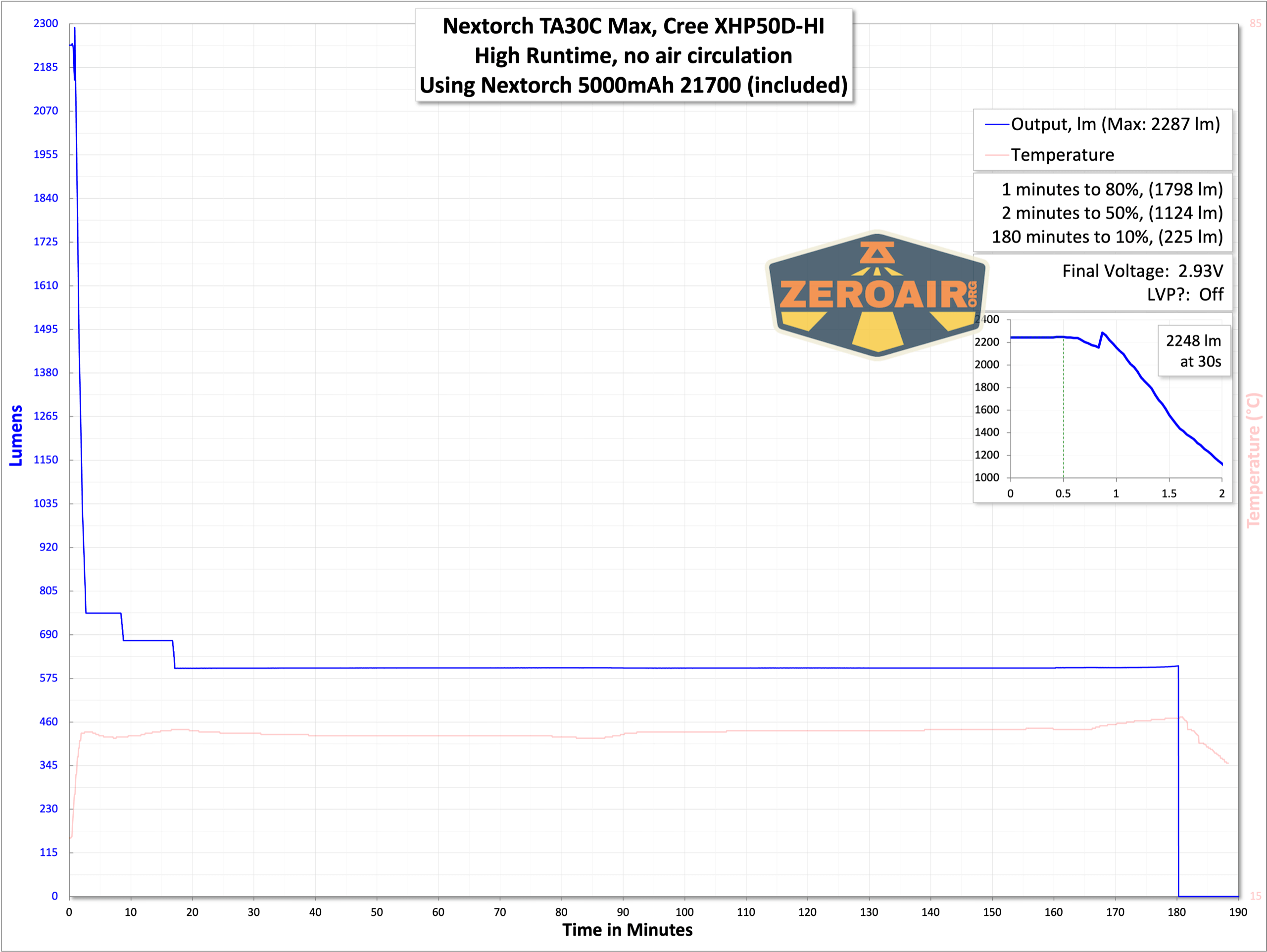 | Measured Lumens (at 30s) | 2248 (74.9% of claim)^ |