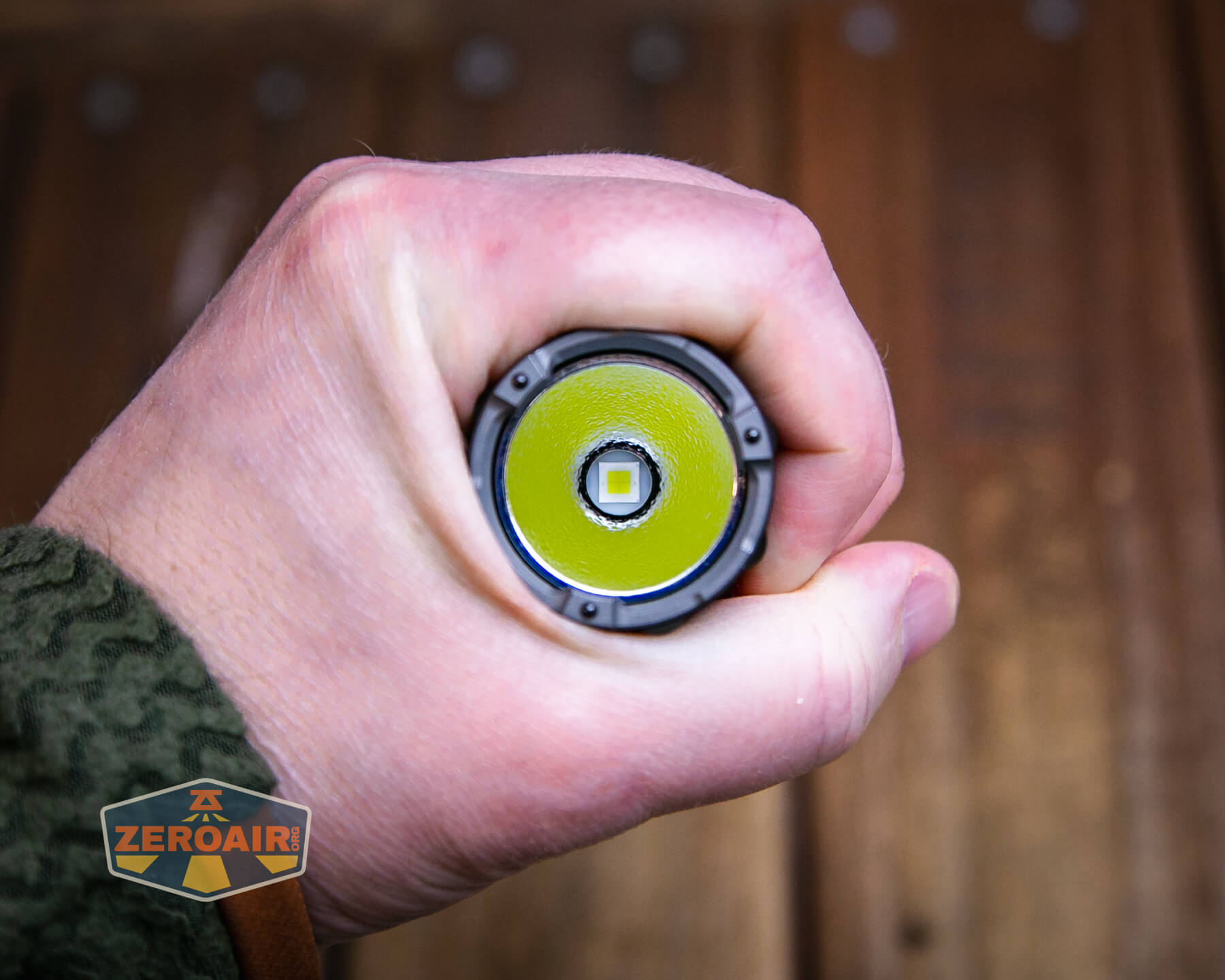 There’s one switch on the Nextorch TA30C Max tactical flashlight. It’s a tail switch and probably e-switch but it functions much like a forward mechanical clicky, though. The switch, however, doesn’t click. That plays into how “one-step” strobe the light is!