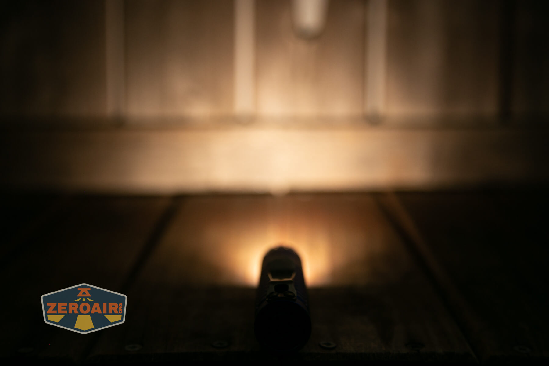 Here’s the test light with the venerable Convoy S2+. Mine’s a custom “baked” edition Nichia 219b triple. A very nice 18650 light.