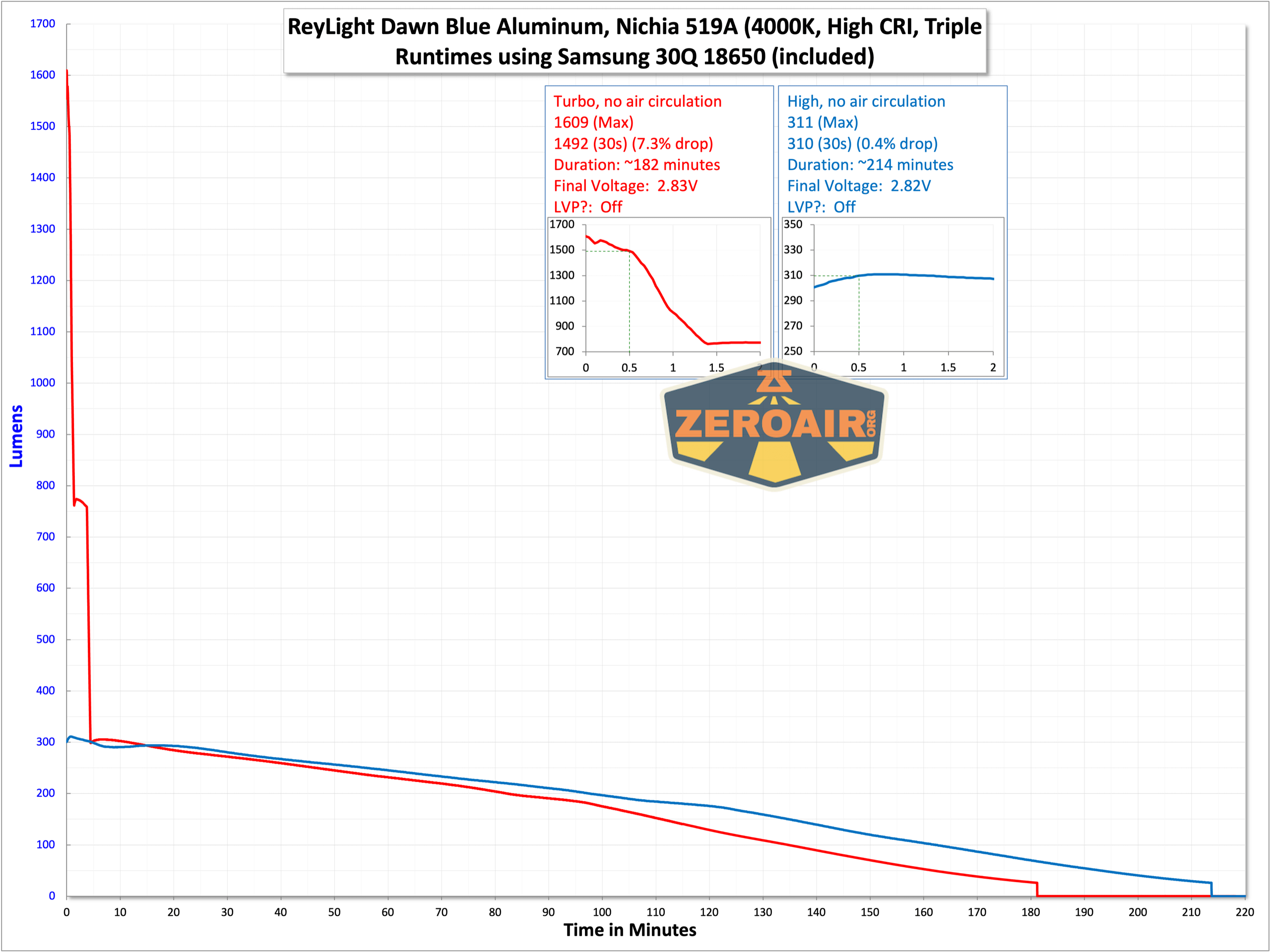 ^ Measurement disclaimer: Testing flashlights is my hobby. I use hobbyist-level equipment for testing, including some I made myself. Try not to get buried in the details of manufacturer specifications versus measurements recorded here; A certain amount of difference (say, 10 or 15%) is perfectly reasonable.