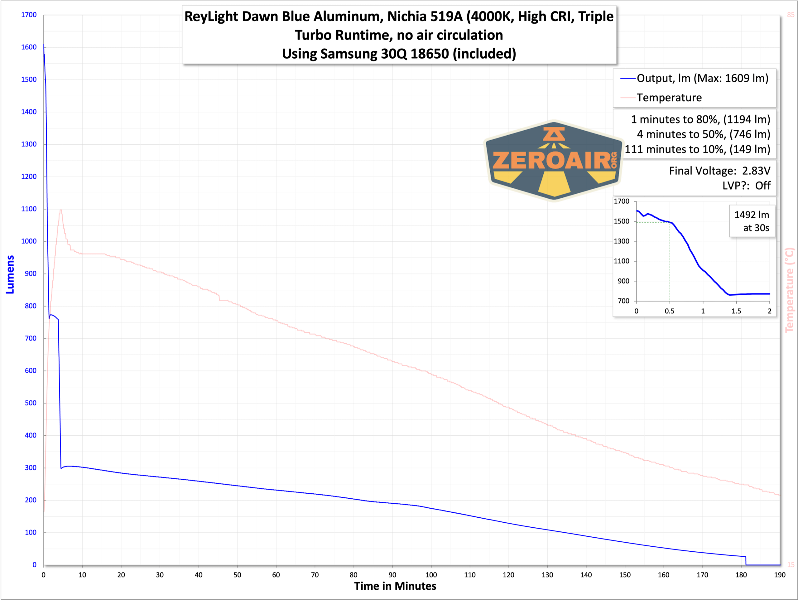 | Measured Lumens (at 30s) | 1492 (82.9% of claim)^ |