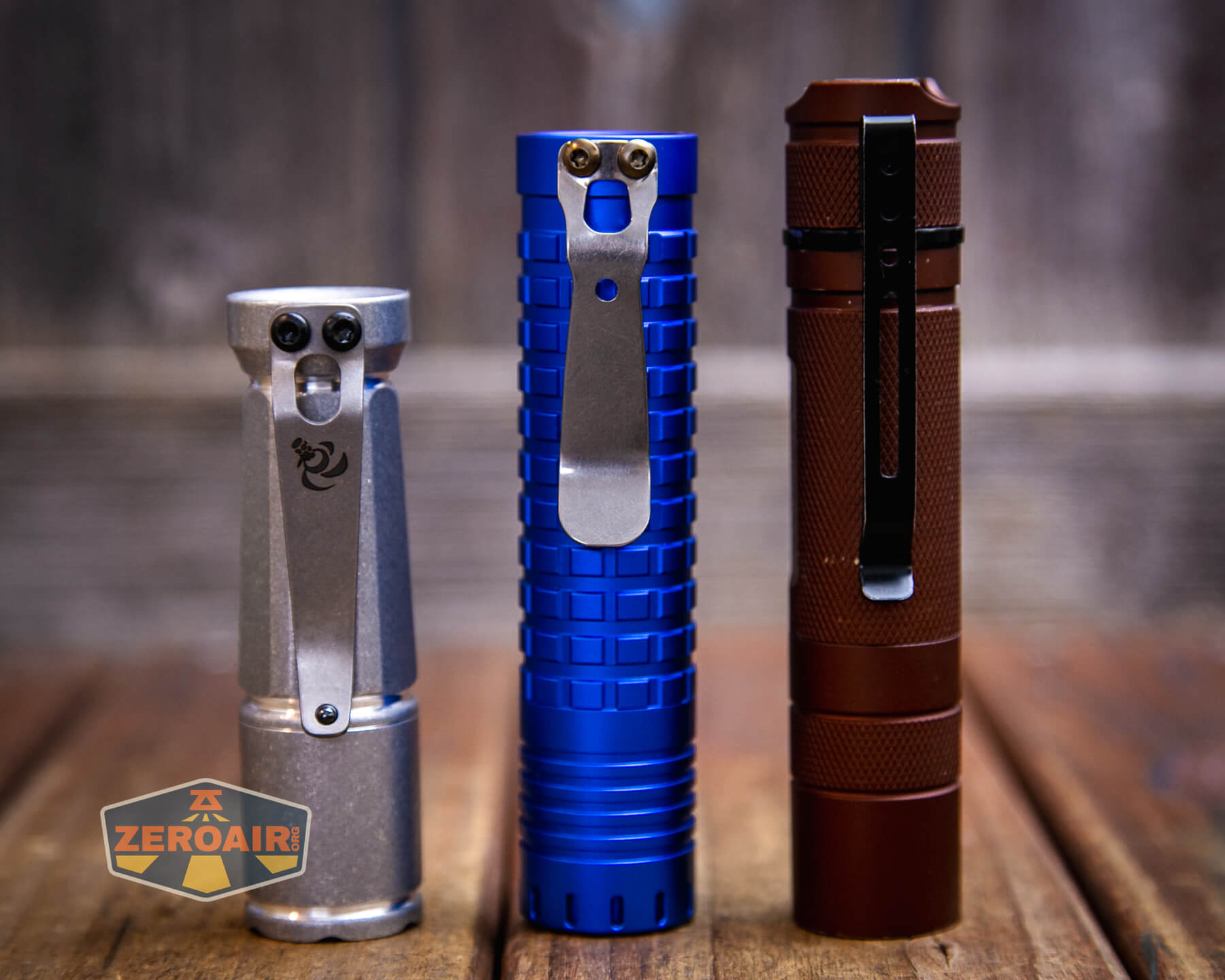 Also above on the left is a new feature light!! Laulima Metal Craft sent this Todai in tumbled aluminum for some size comparison photos like the ones above. Laulima has a bunch of incredible items. I’ve tested one (the Laulima Metal Craft Hoku) (the official site for Hoku is here) that was a Friend Fund Friday review. I was impressed enough by that Hoku that I bought a Laulima Metal Craft Diamond Slim (also in tumbled aluminum) (review is upcoming!) These lights by Laulima have impeccable build quality and not only that, they’re quite configurable. There are some (great, actually) default configurations, but Joshua Dawson (of Laulima Metal Craft) is open to ideas and emitter options and the like. I haven’t reviewed this Todai, but I have to say, it feels absolutely fantastic and I love it thus far. (Notably, I love how warm and eggy those emitters look through the TIR.)