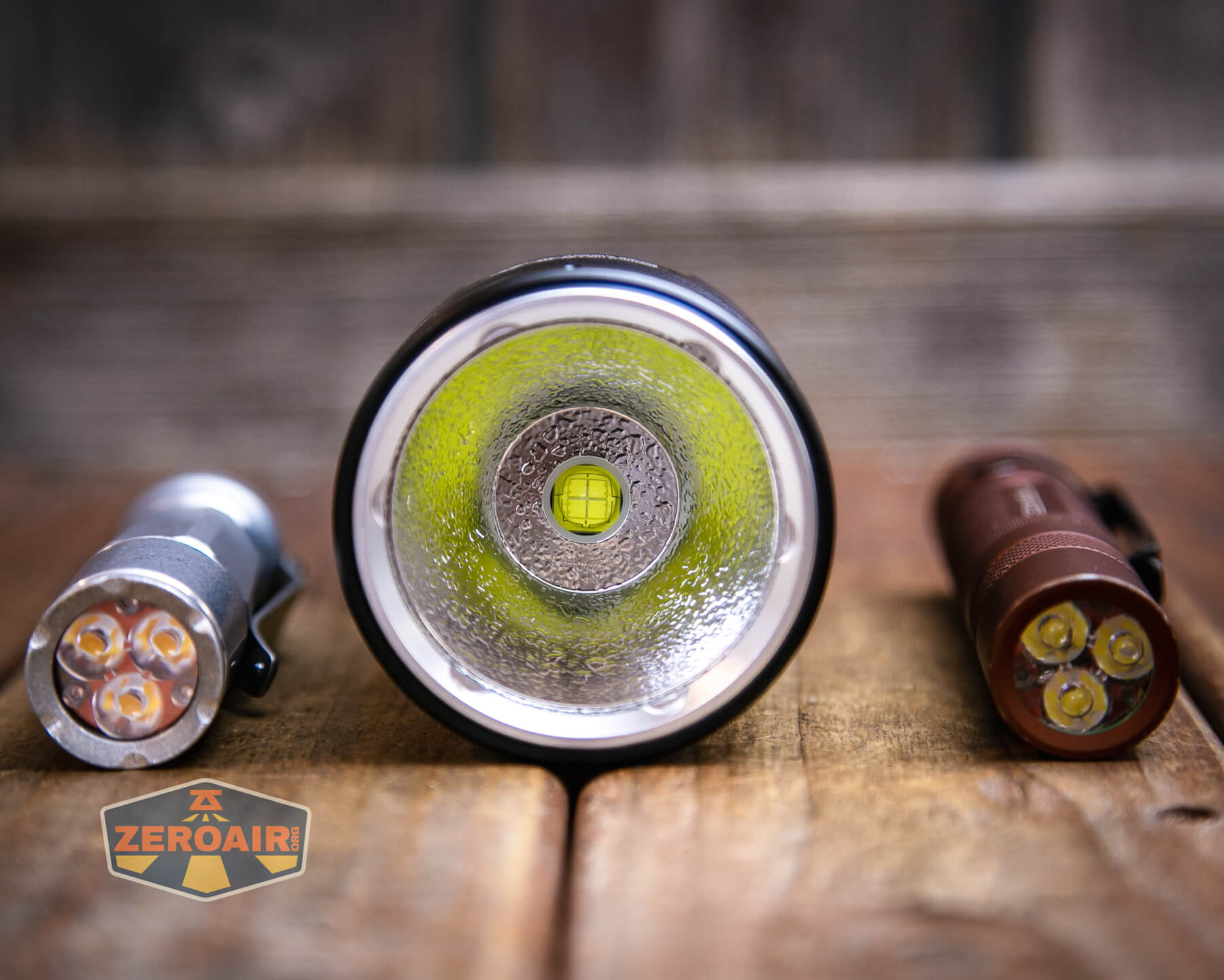 Also above on the left is a new feature light!! Laulima Metal Craft sent this Todai in tumbled aluminum for some size comparison photos like the ones above. Laulima has a bunch of incredible items. I’ve tested one (the Laulima Metal Craft Hoku) (the official site for Hoku is here) that was a Friend Fund Friday review. I was impressed enough by that Hoku that I bought a Laulima Metal Craft Diamond Slim (also in tumbled aluminum) (review is upcoming!) These lights by Laulima have impeccable build quality and not only that, they’re quite configurable. There are some (great, actually) default configurations, but Joshua Dawson (of Laulima Metal Craft) is open to ideas and emitter options and the like. I haven’t reviewed this Todai, but I have to say, it feels absolutely fantastic and I love it thus far. (Notably, I love how warm and eggy those emitters look through the TIR.)
