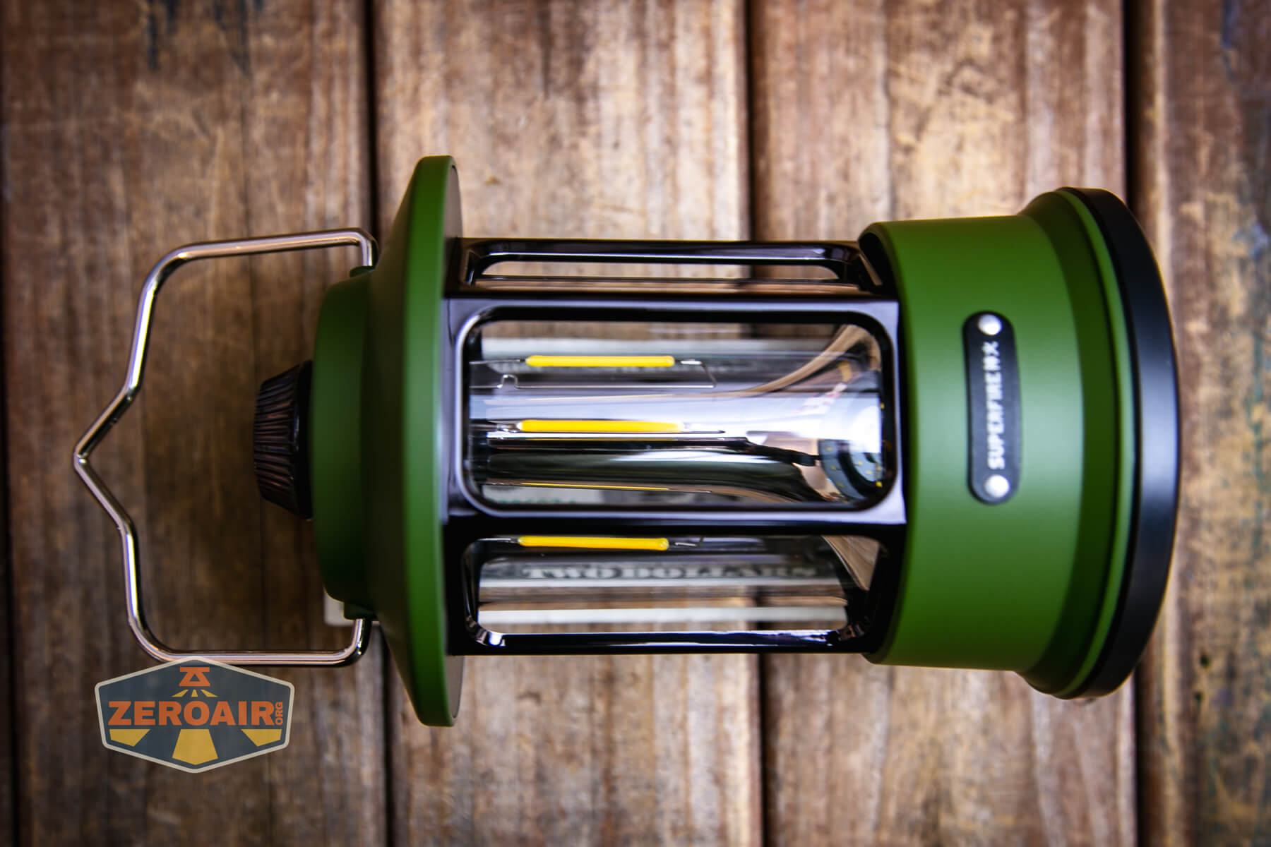 Two body colors of the Superfire T35 rechargeable camping lantern are available – green (seen in this post) and cream (or white).