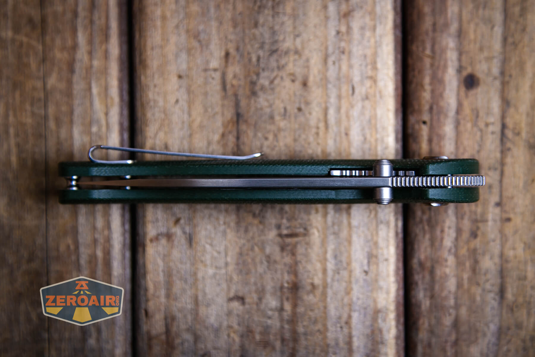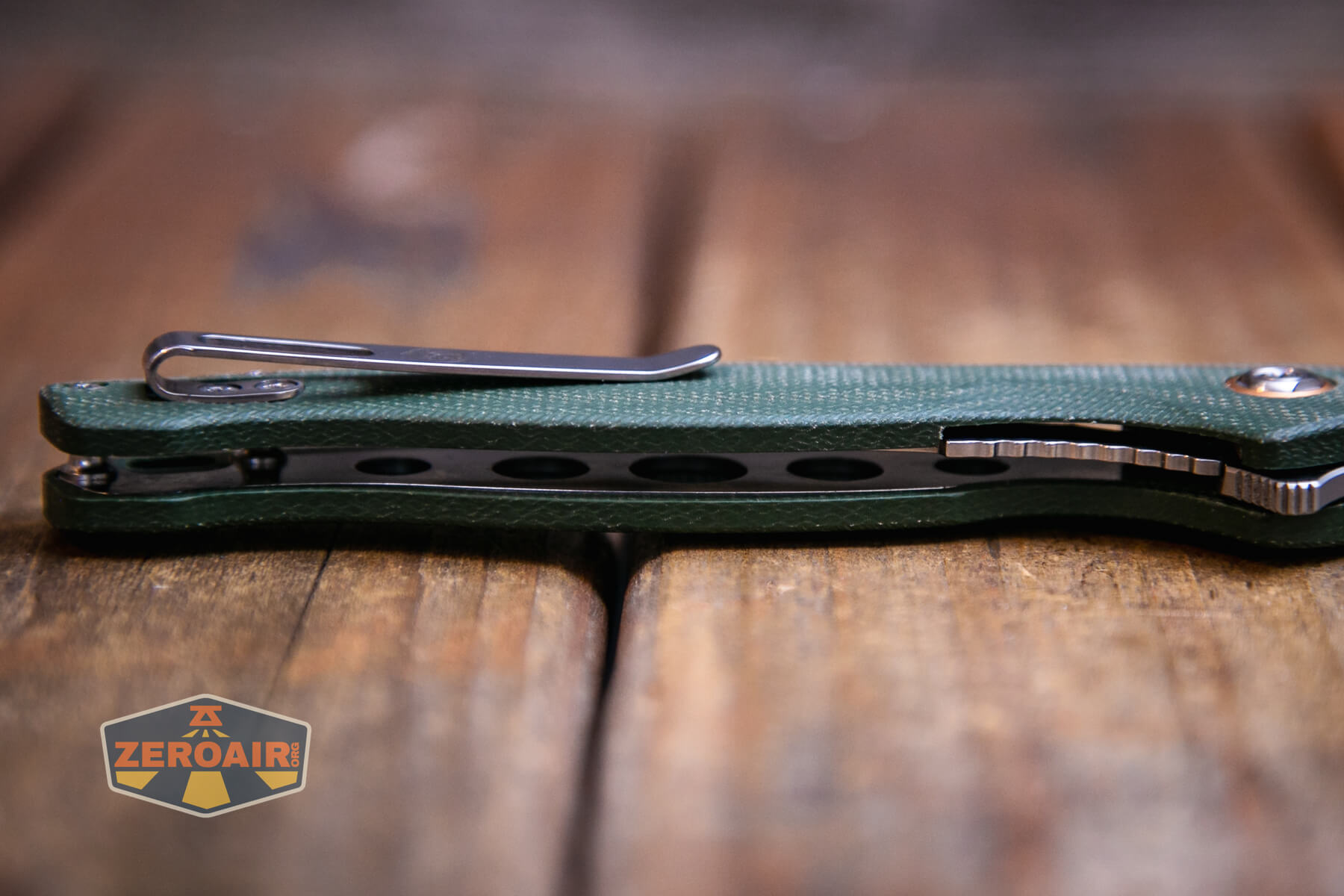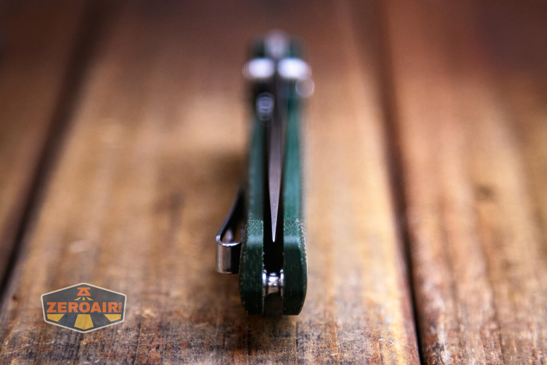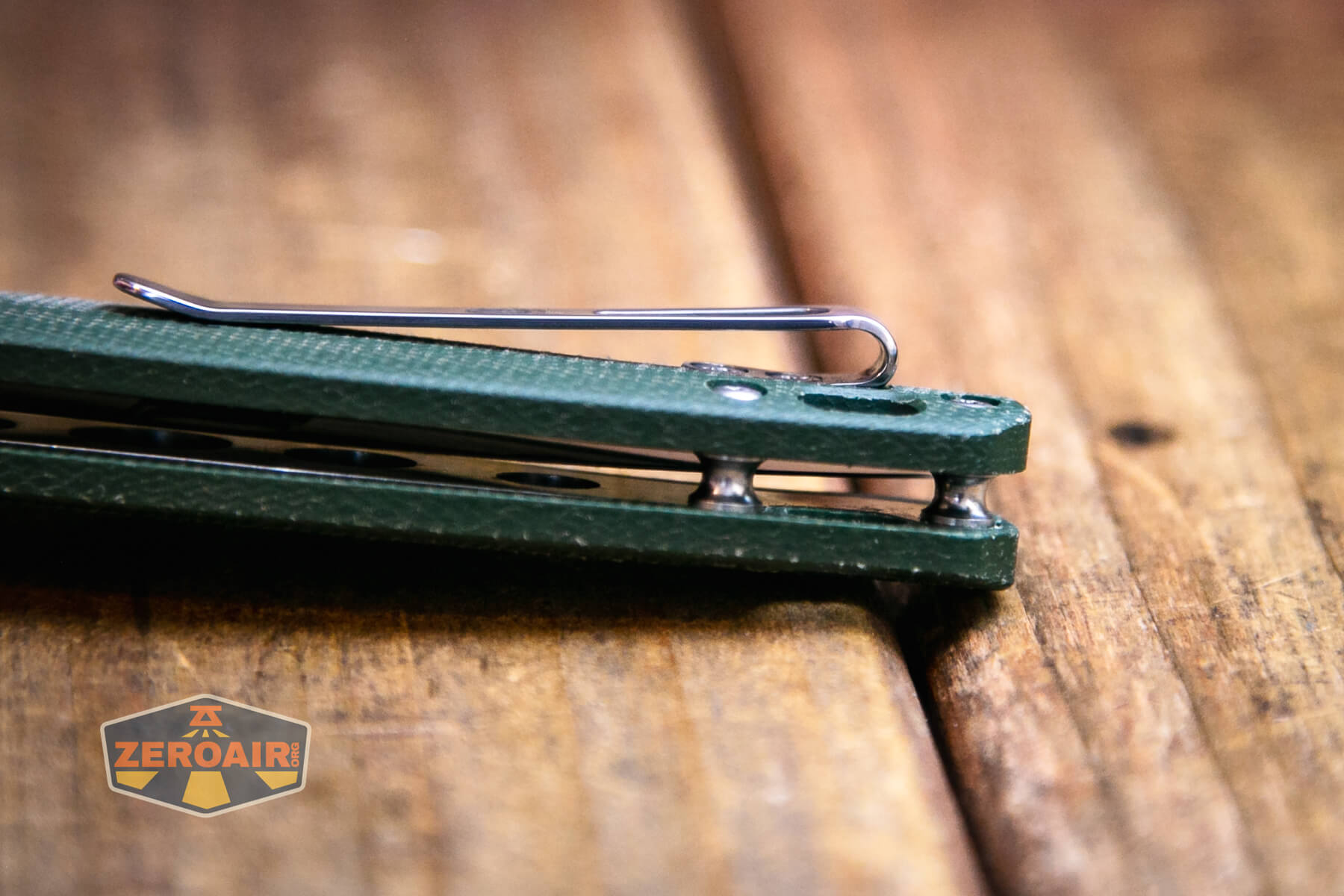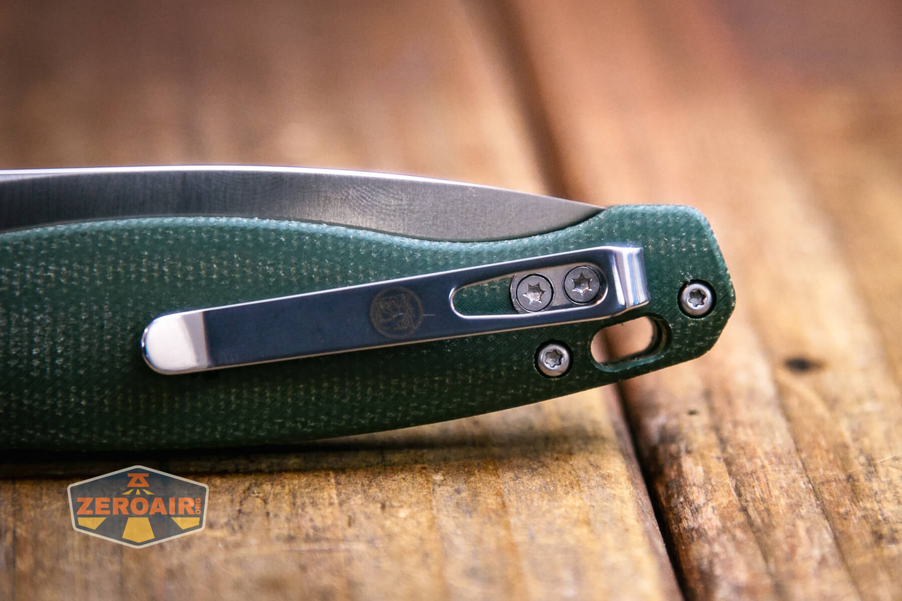 The pocket clip used on the Labrador is similar to other Vosteed knives I’ve seen (like the Nightshade.) The pocket clip is a nice deep carry clip. The clip is held in place by two “over/under” TORX screws (around T6, I think).