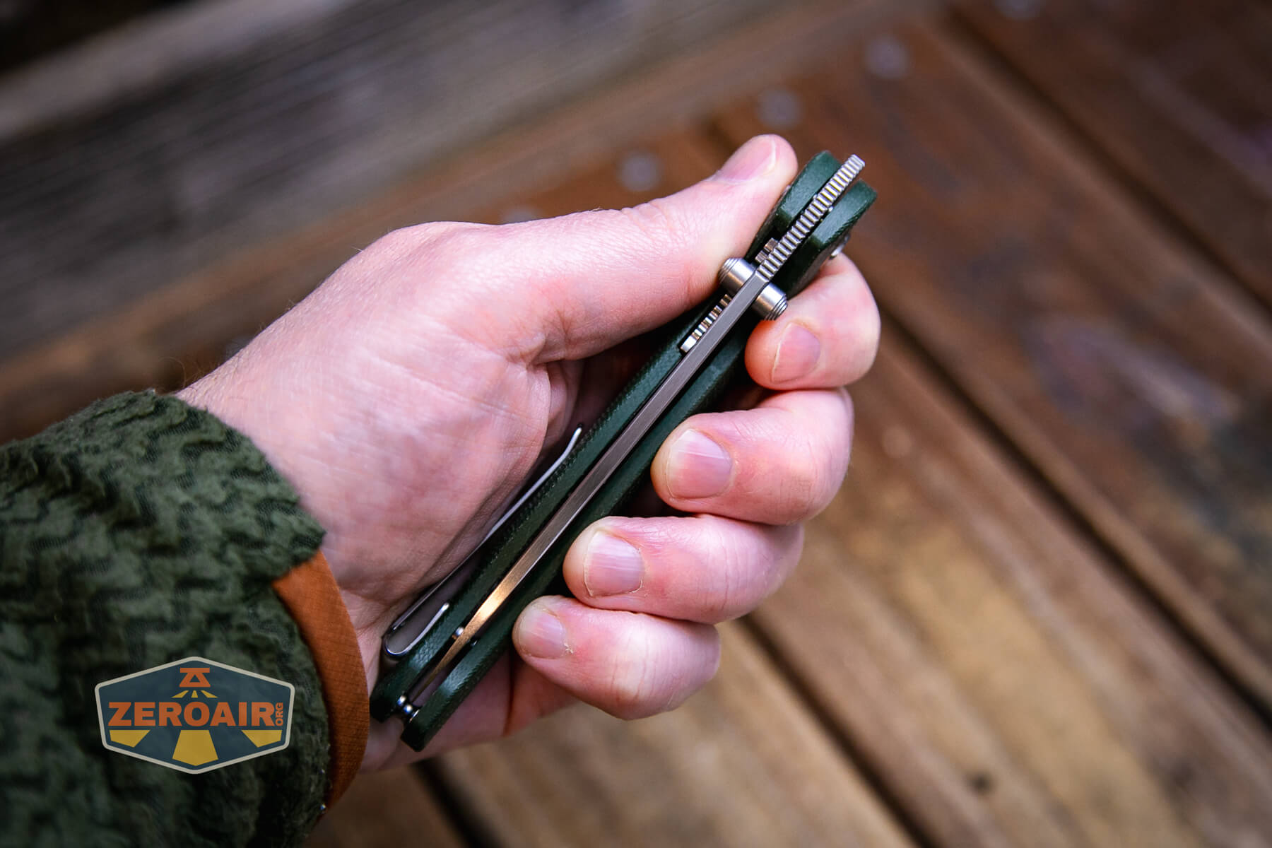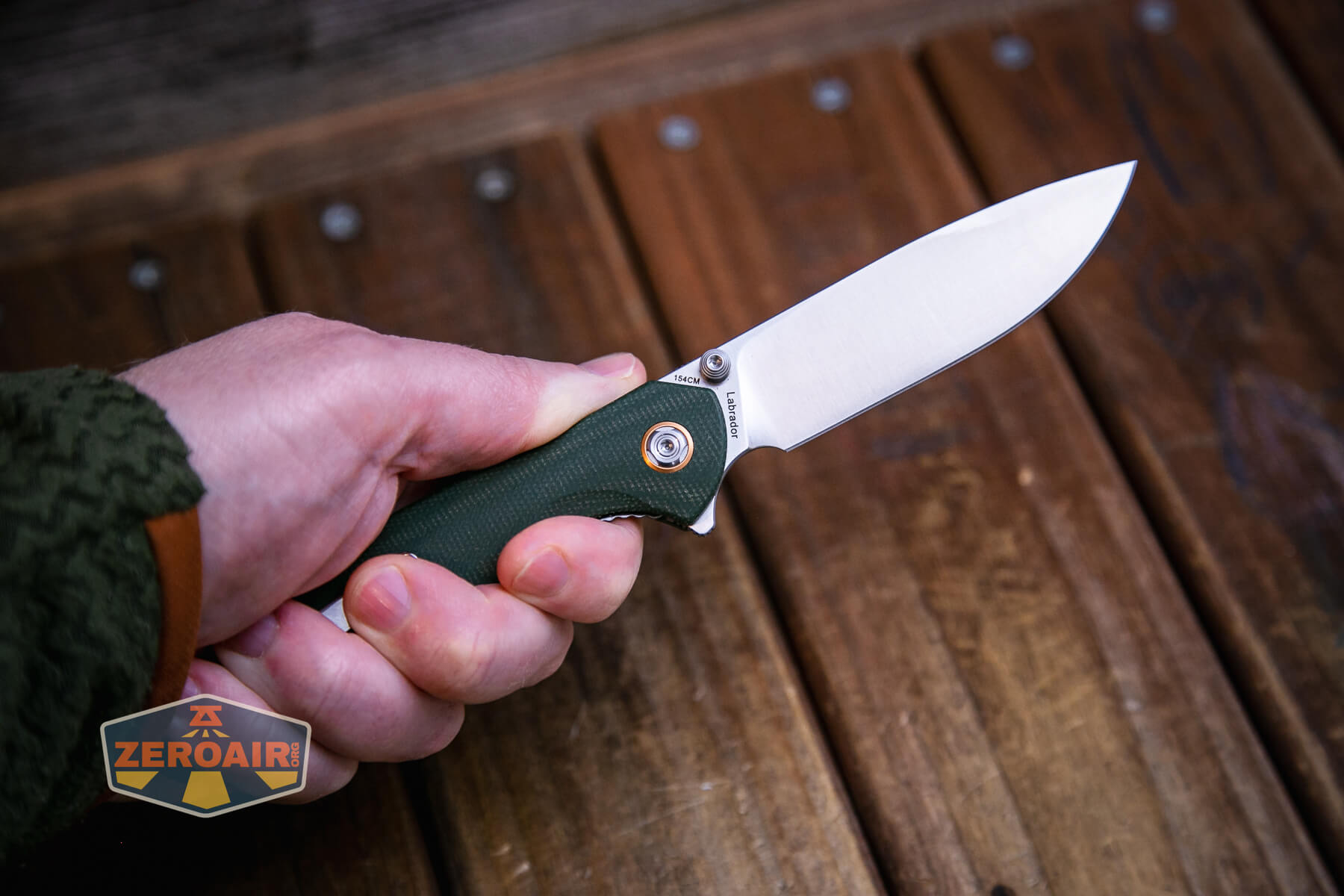 This action is very good and is probably going to be the best way to open the Labrador. The blade weight really aids in swinging the knife open.