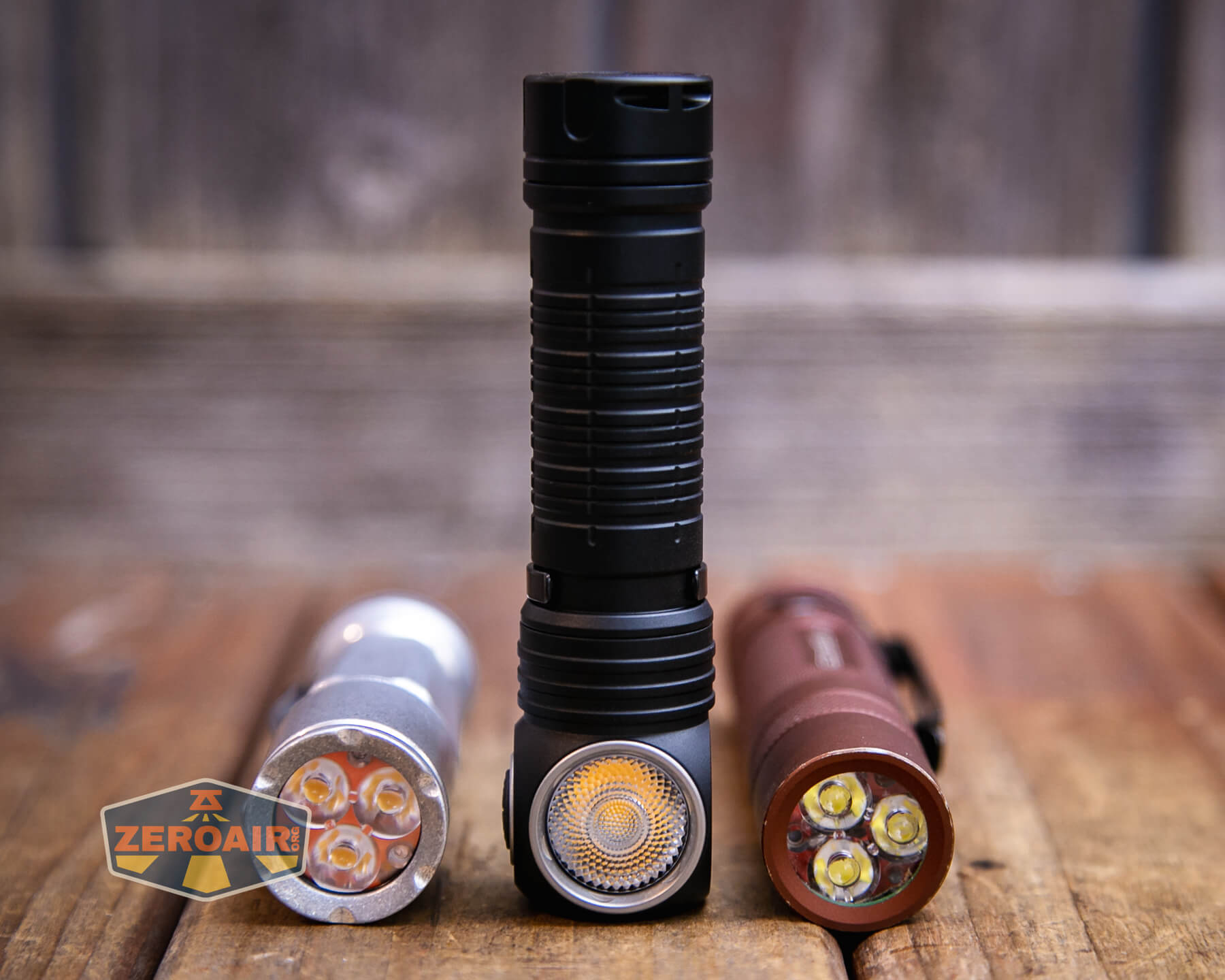Also above on the left is a new feature light!! Laulima Metal Craft sent this Todai in tumbled aluminum for some size comparison photos like the ones above. Laulima has a bunch of incredible items. I’ve tested one (the Laulima Metal Craft Hoku) (the official site for Hoku is here) that was a Friend Fund Friday review. I was impressed enough by that Hoku that I bought a Laulima Metal Craft Diamond Slim (also in tumbled aluminum) (review is upcoming!) These lights by Laulima have impeccable build quality, and not only that, they’re quite configurable. There are some (great, actually) default configurations, but Joshua Dawson (of Laulima Metal Craft) is open to ideas and emitter options and the like. I haven’t reviewed this Todai, but I have to say, it feels absolutely fantastic, and I love it thus far. (Notably, I love how warm and eggy those emitters look through the TIR.)