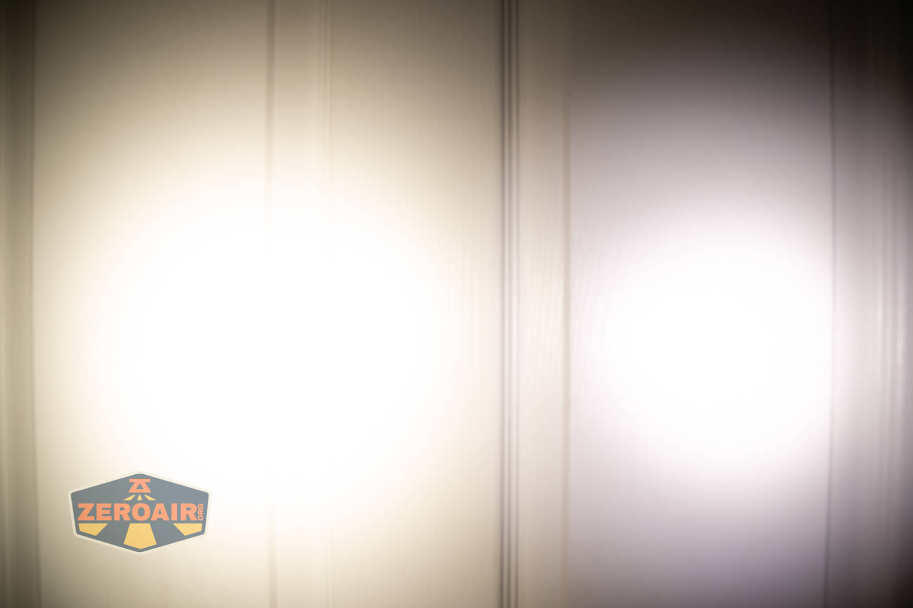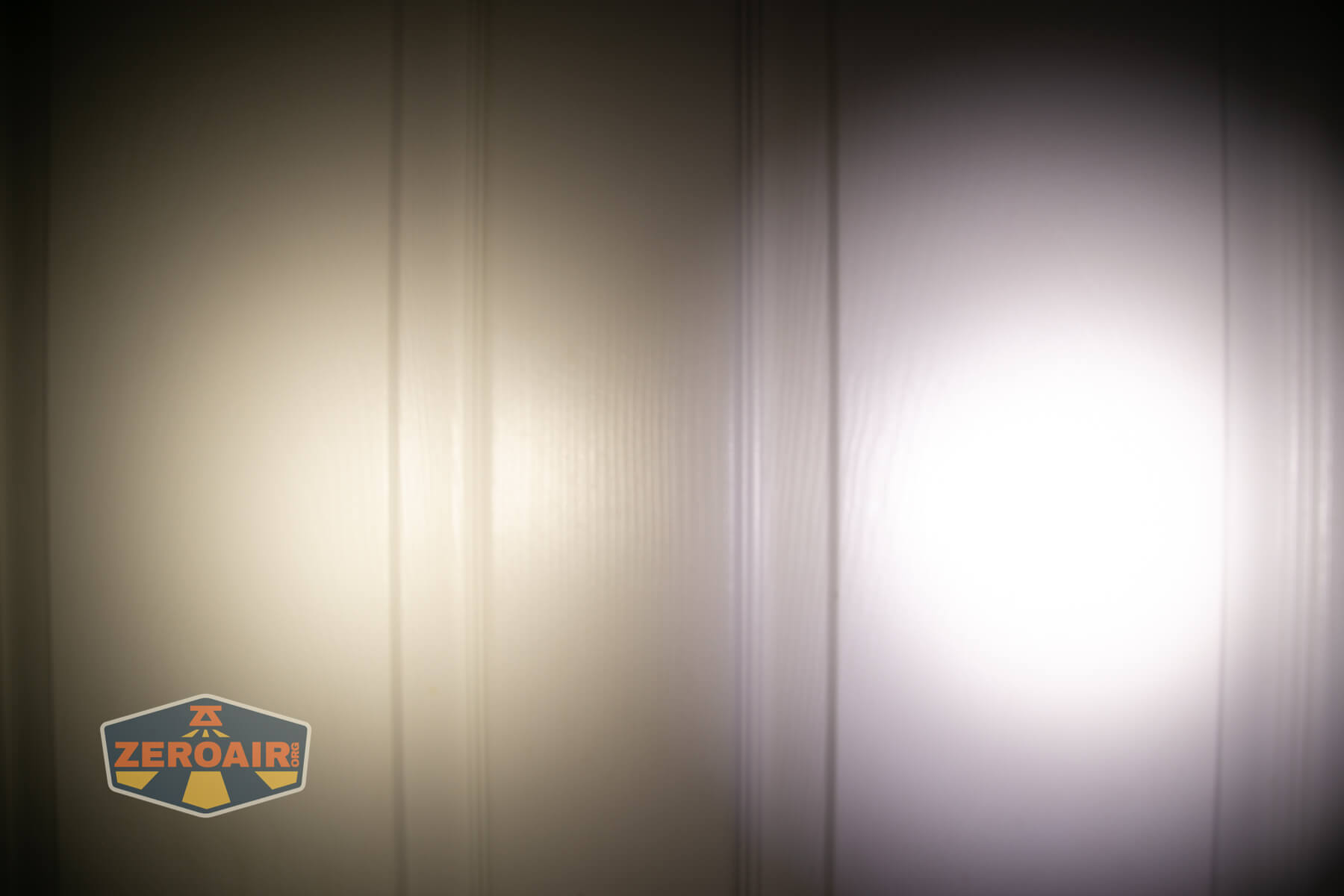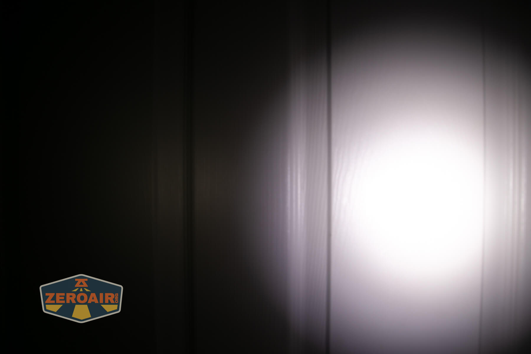 Here’s the test light with the venerable Convoy S2+. Mine’s a custom “baked” edition Nichia 219b triple. A very nice 18650 light.