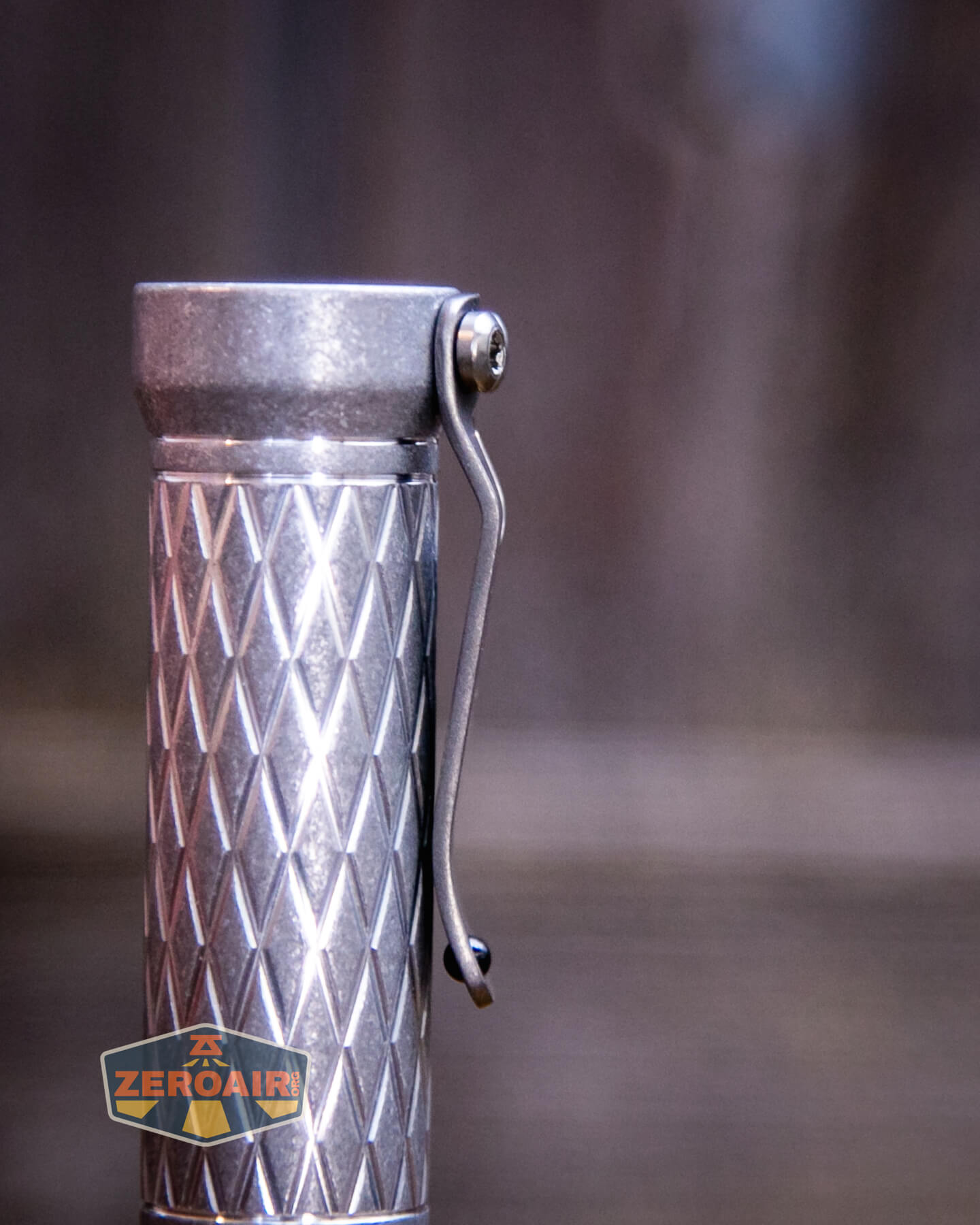 Laulima has a surprising number of designs of 14500 flashlights. Of the Diamond Slim specifically, there are a number of versions, too! The Diamond Slim is available in titanium, copper, bronze, and aluminum (seen here) as well as probably others. Those are available in different finishes, too, such as satin and tumbled (seen here).