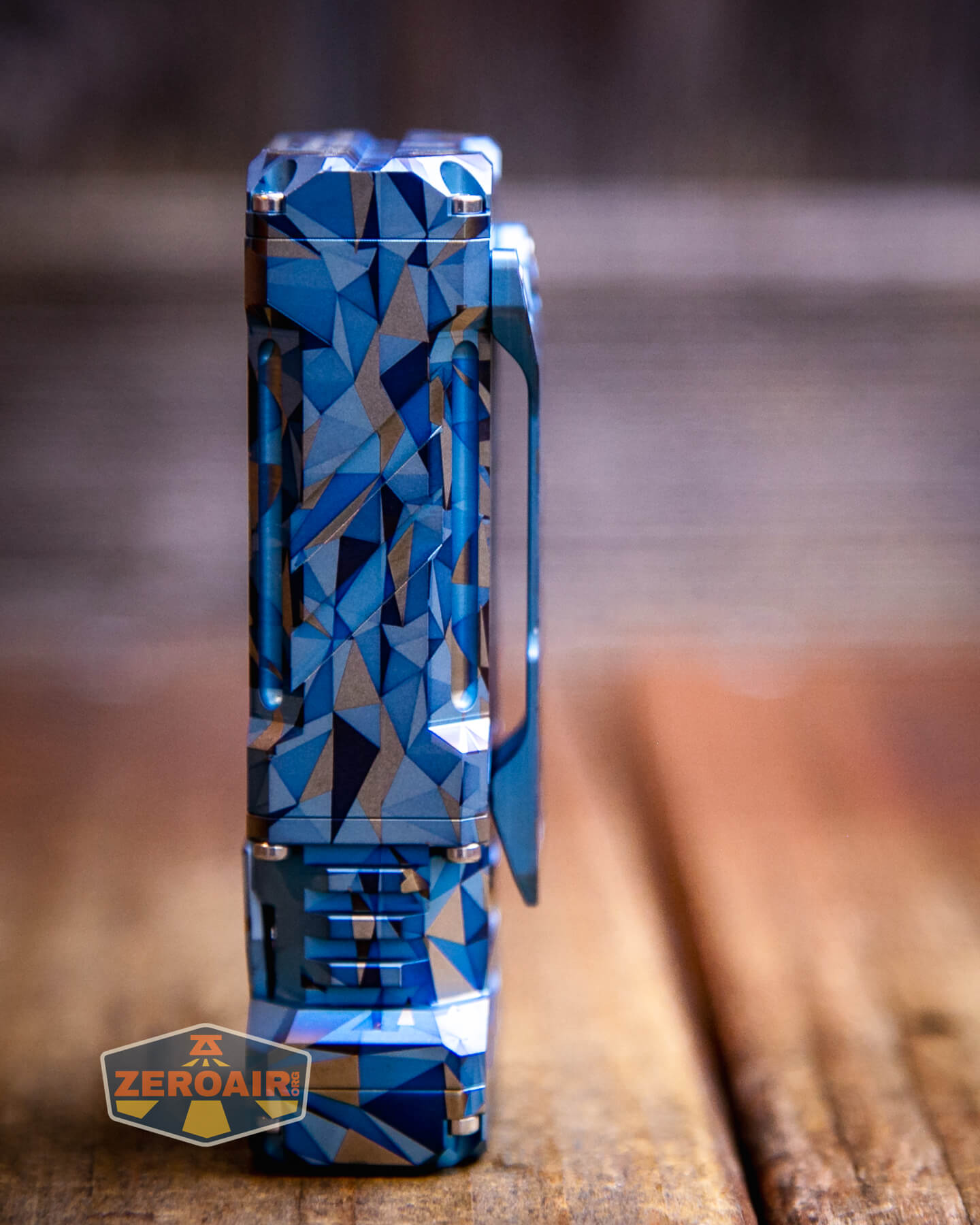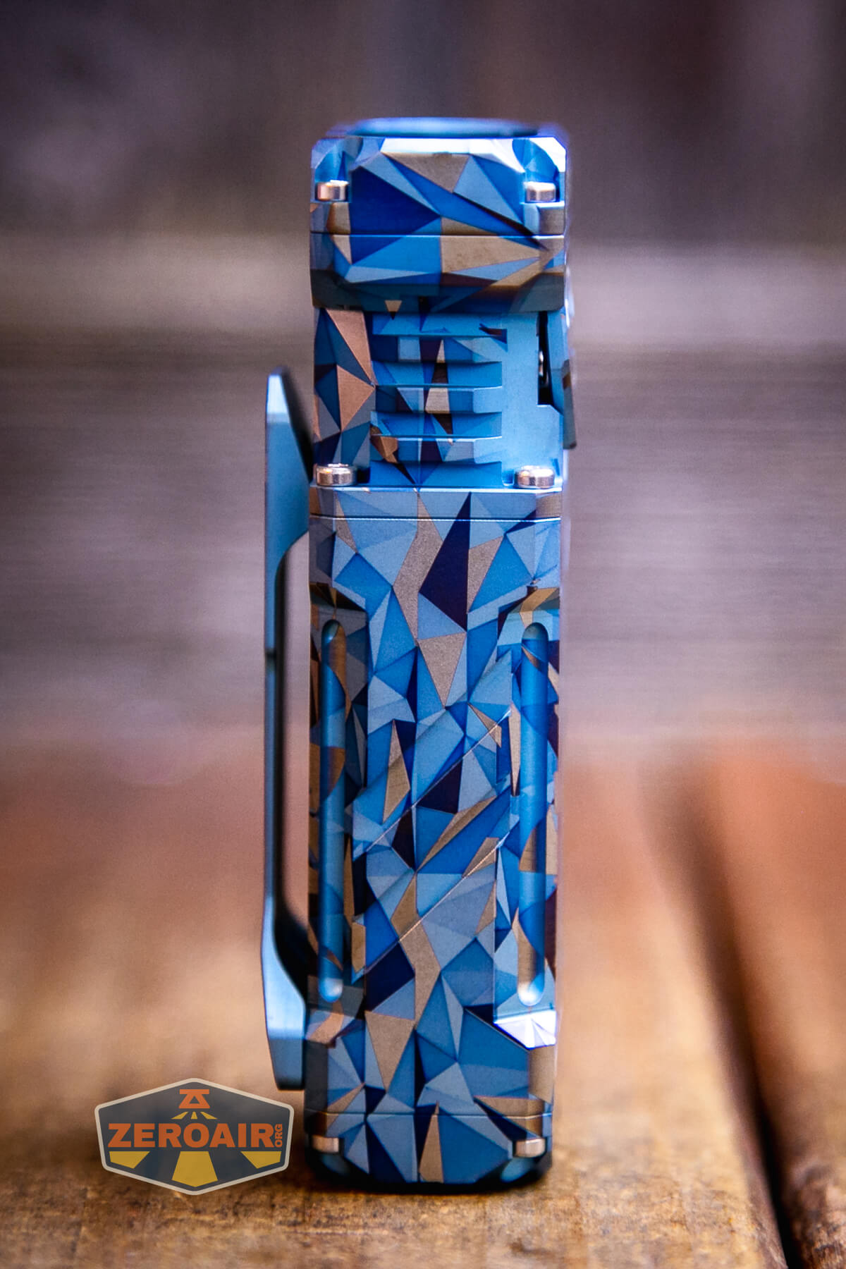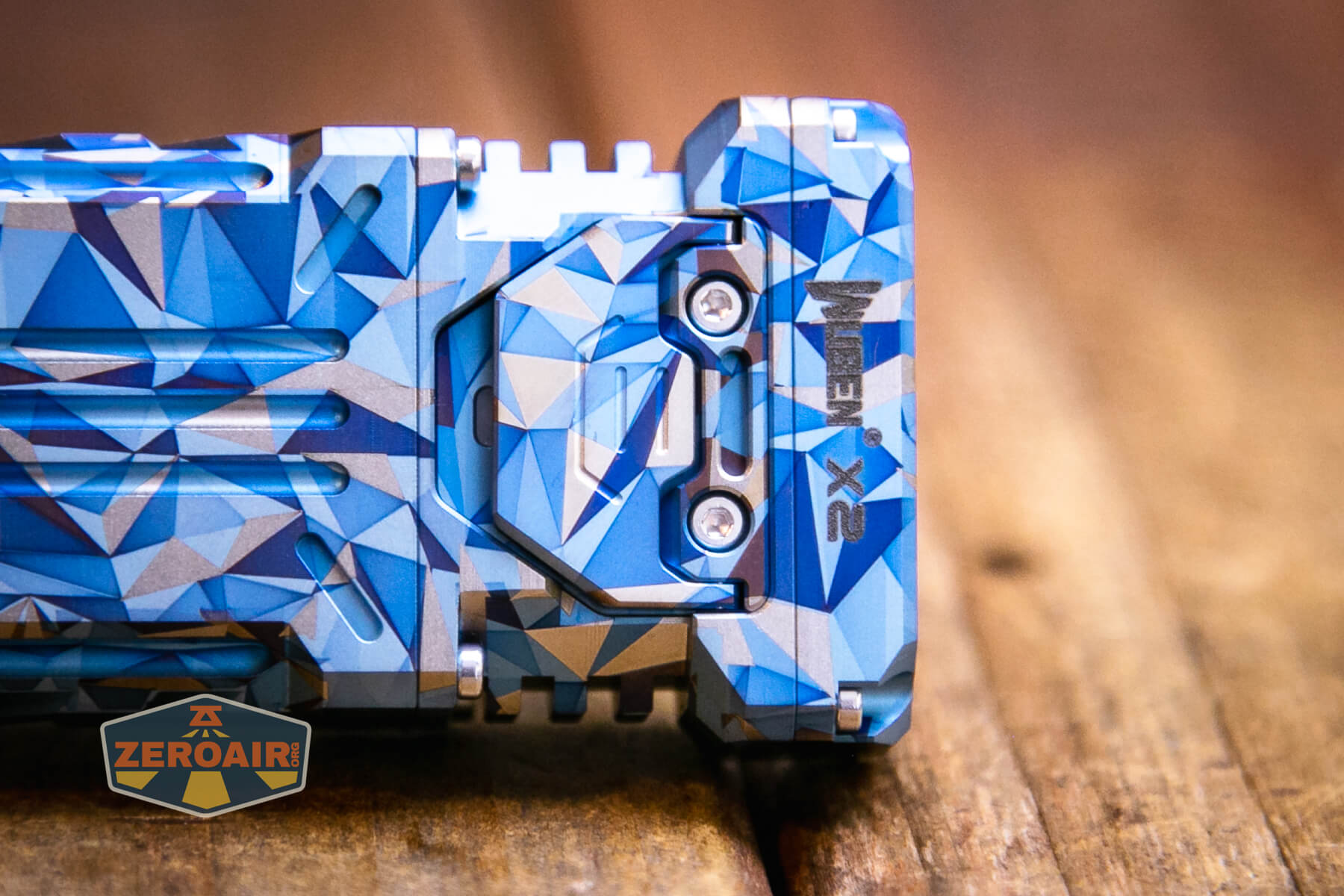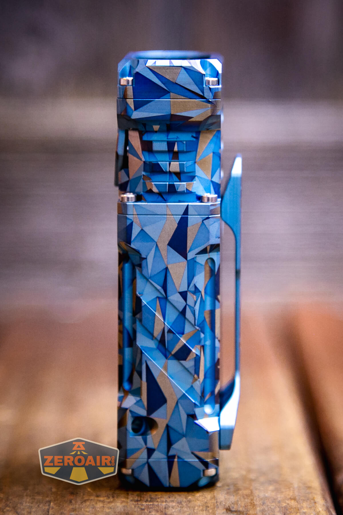 The Wuben X-2 Owl flashlight has been released in copper and titanium. Titanium has finish options, too, including this “Blue Geometric!”