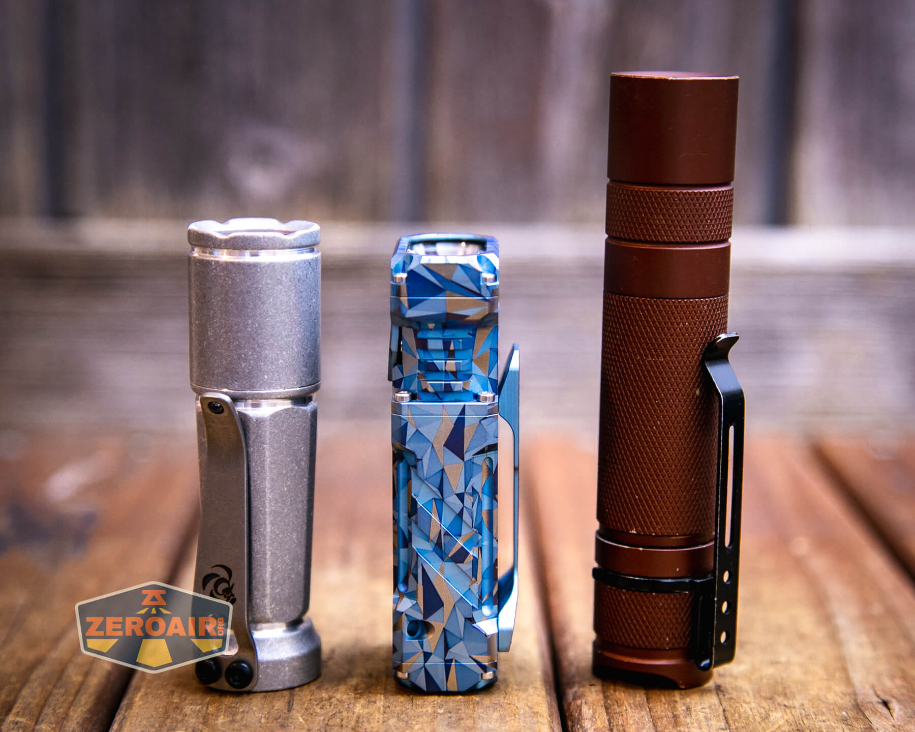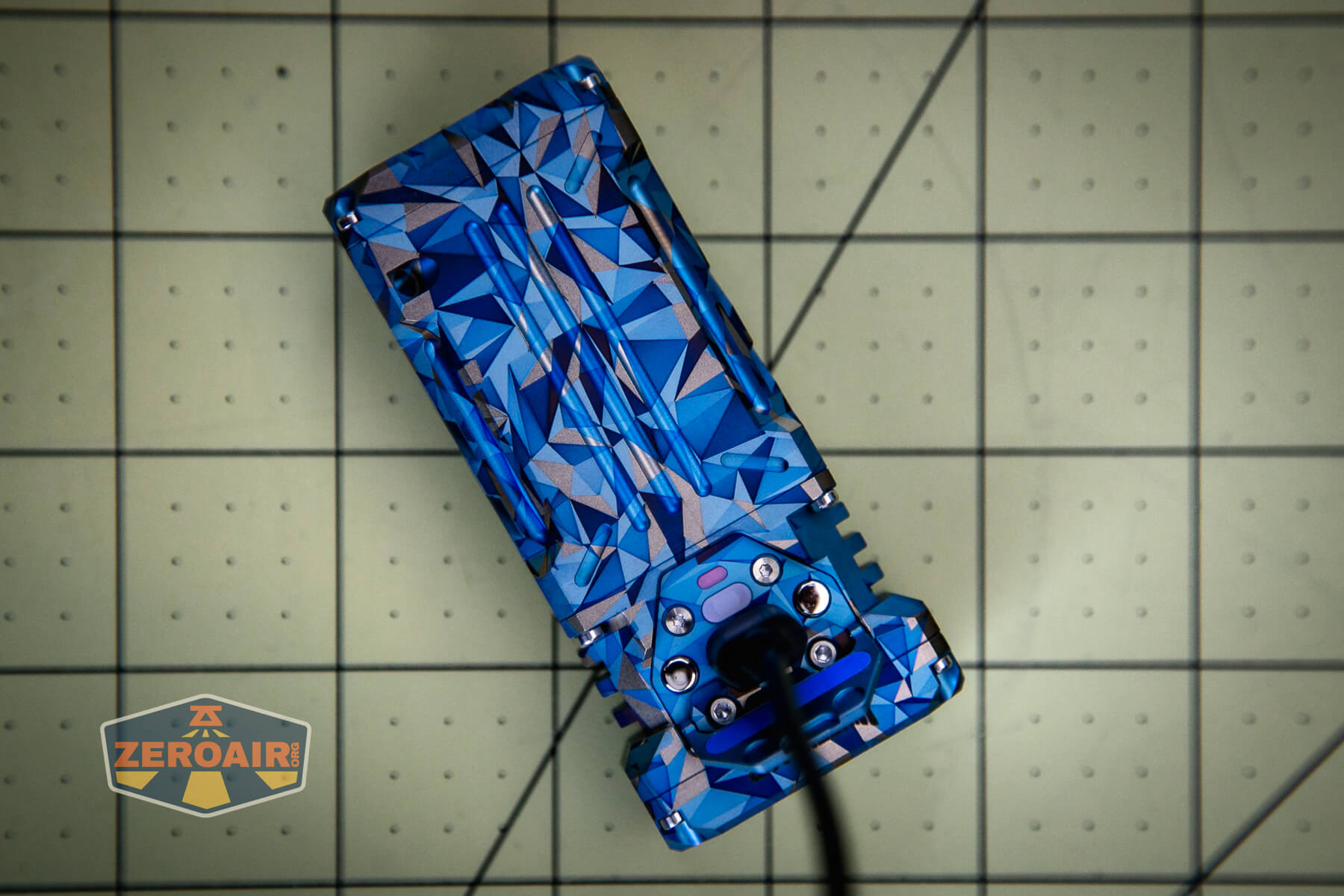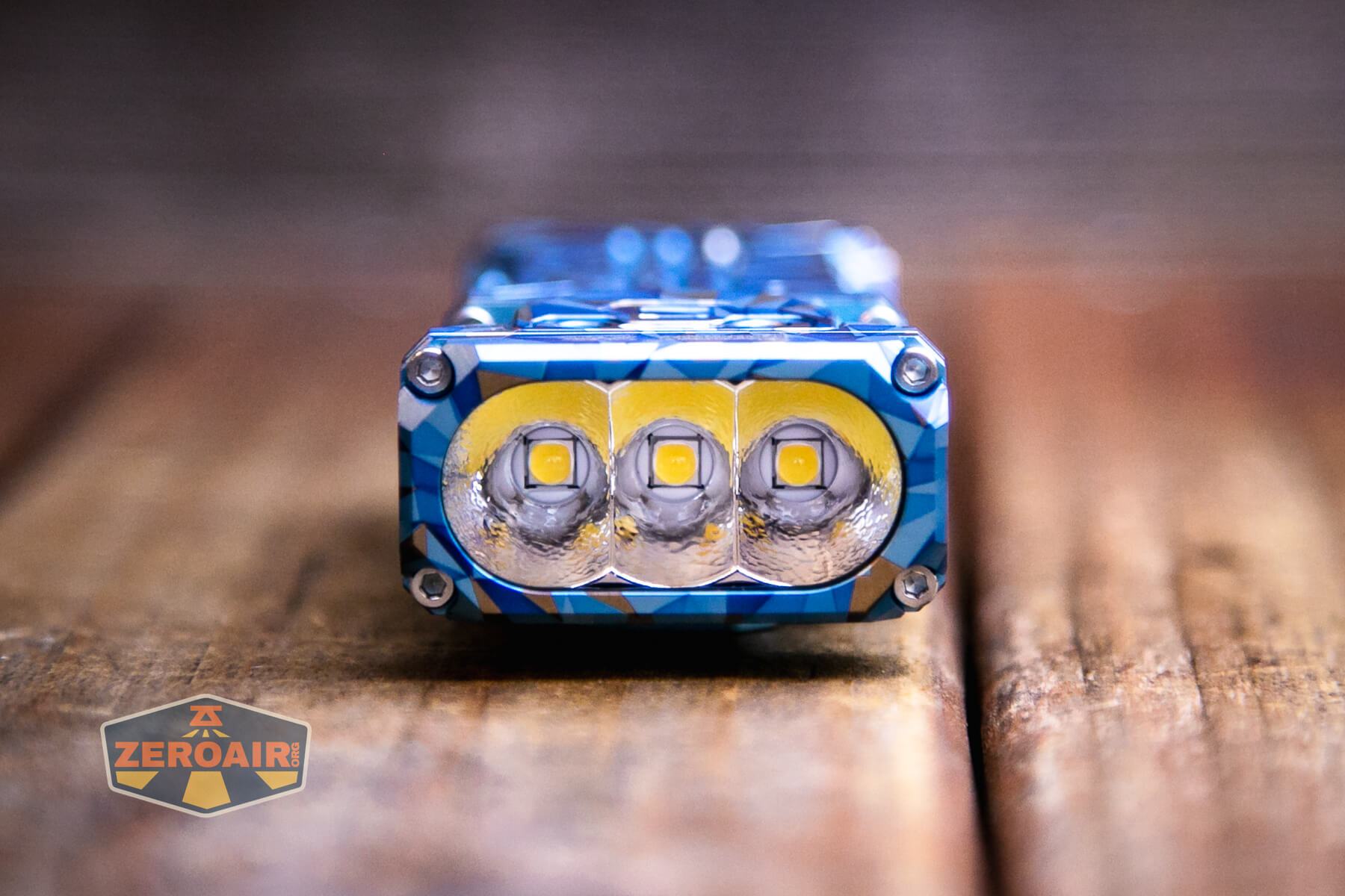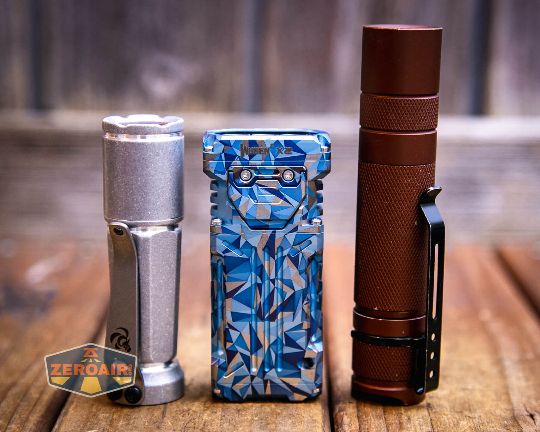 The Wuben X-2 Owl flashlight has been released in copper and titanium. Titanium has finish options, too, including this “Blue Geometric!”