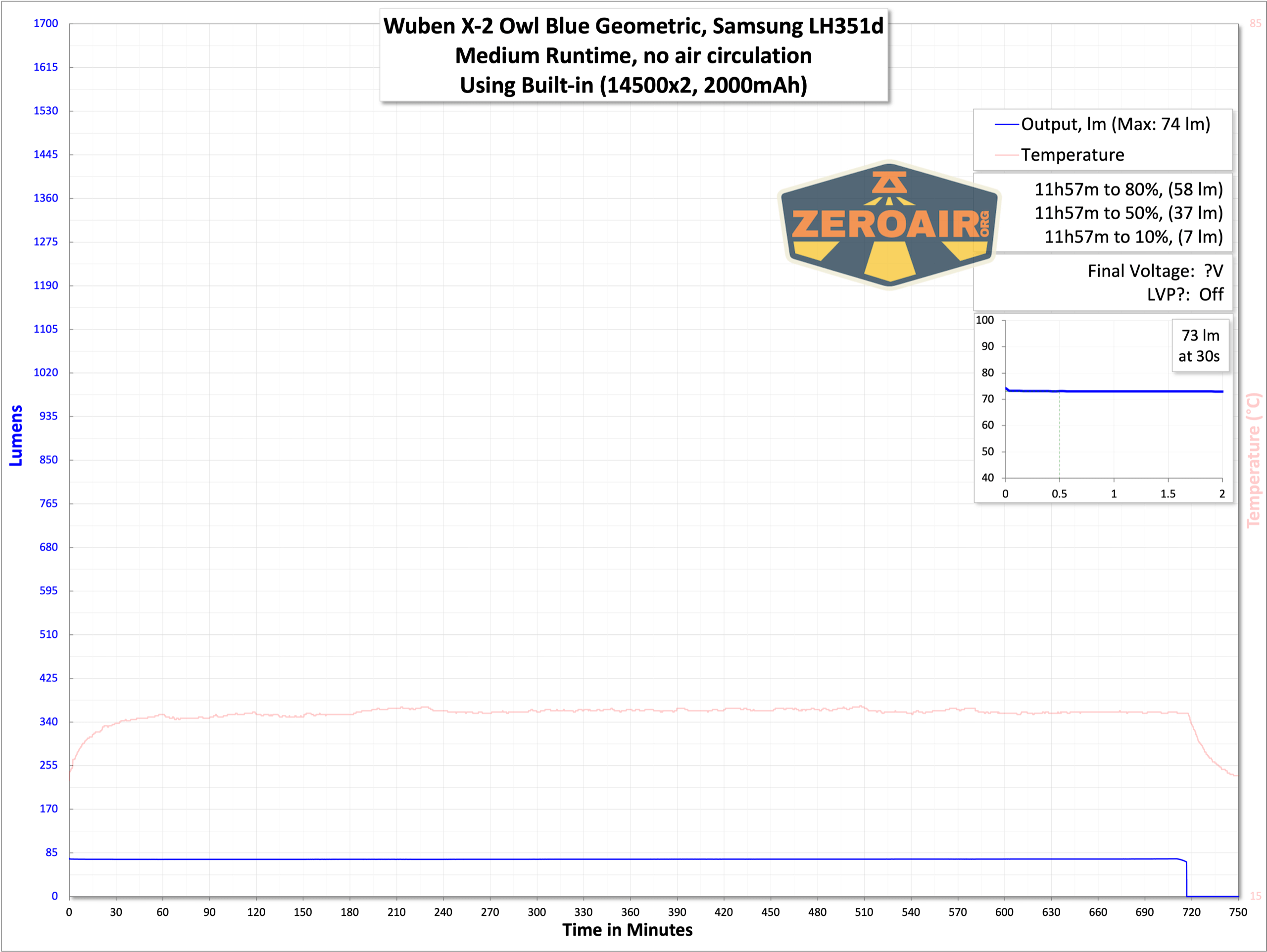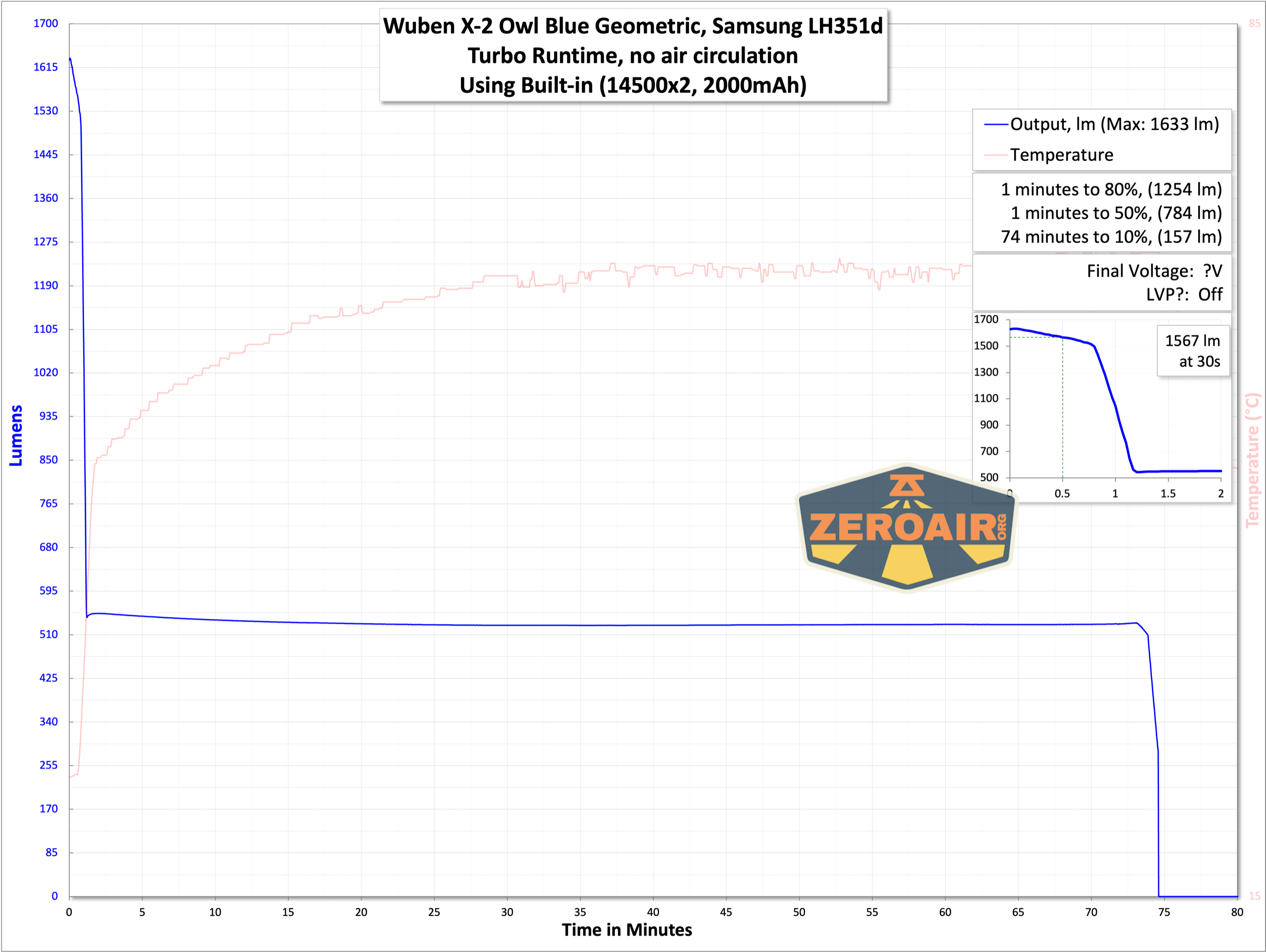 Wuben X-2 Owl Titanium flashlight runtime graph