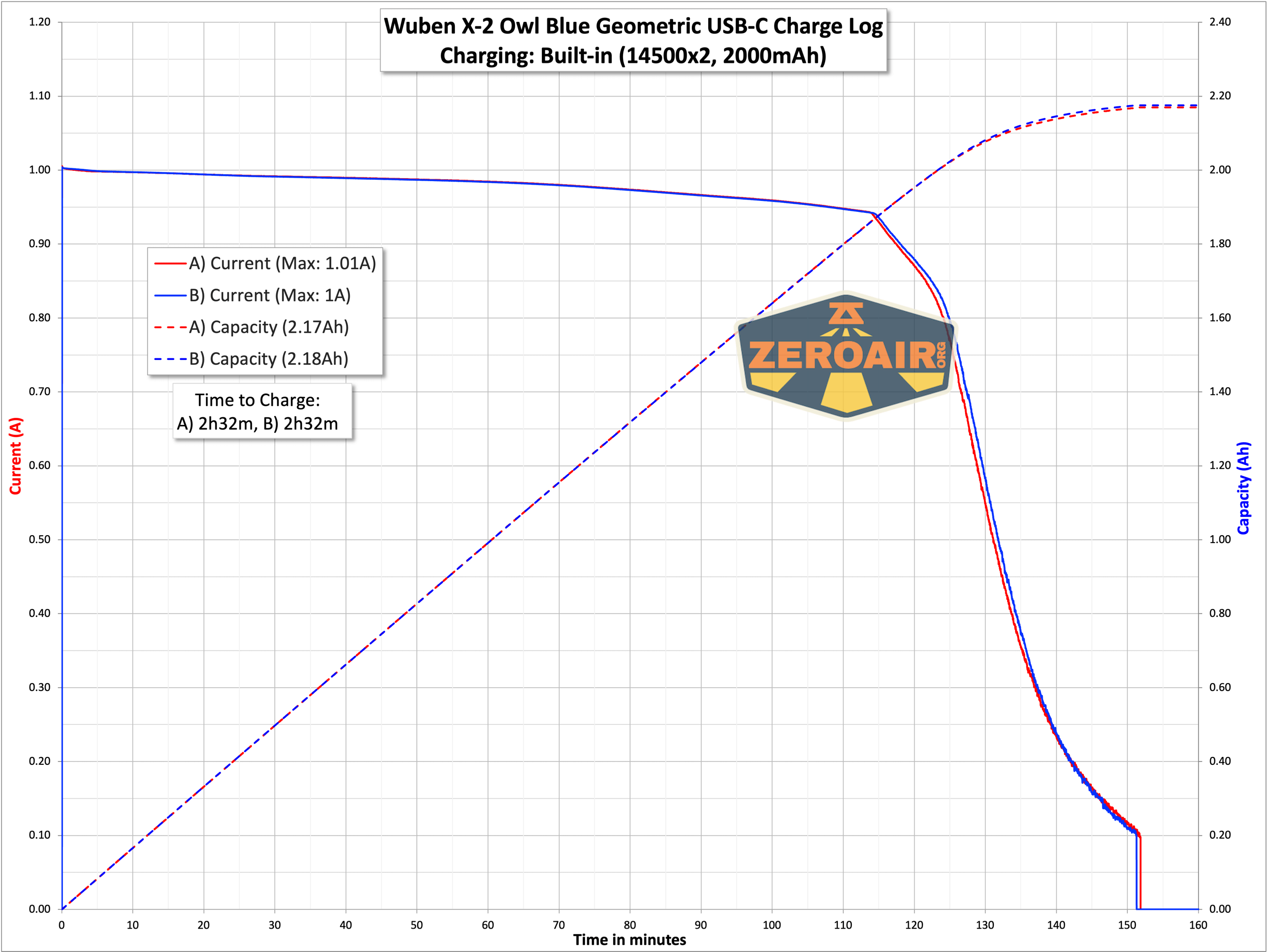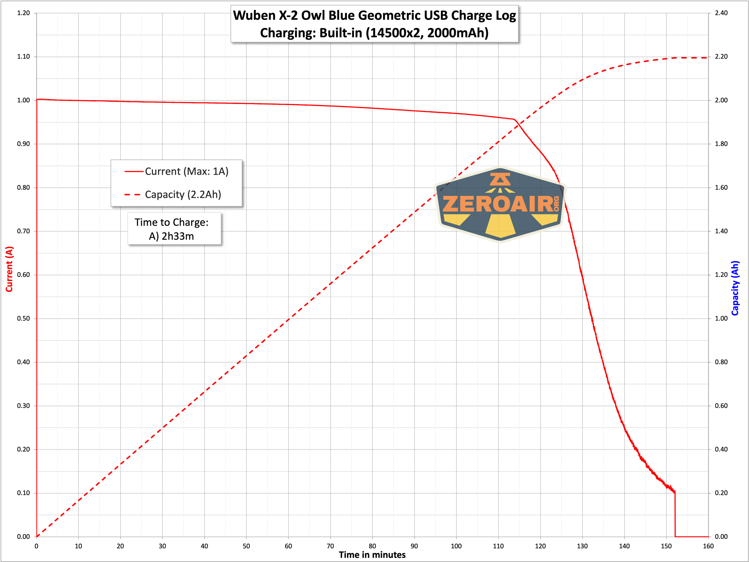Wuben X-2 Owl Titanium flashlight charging graph