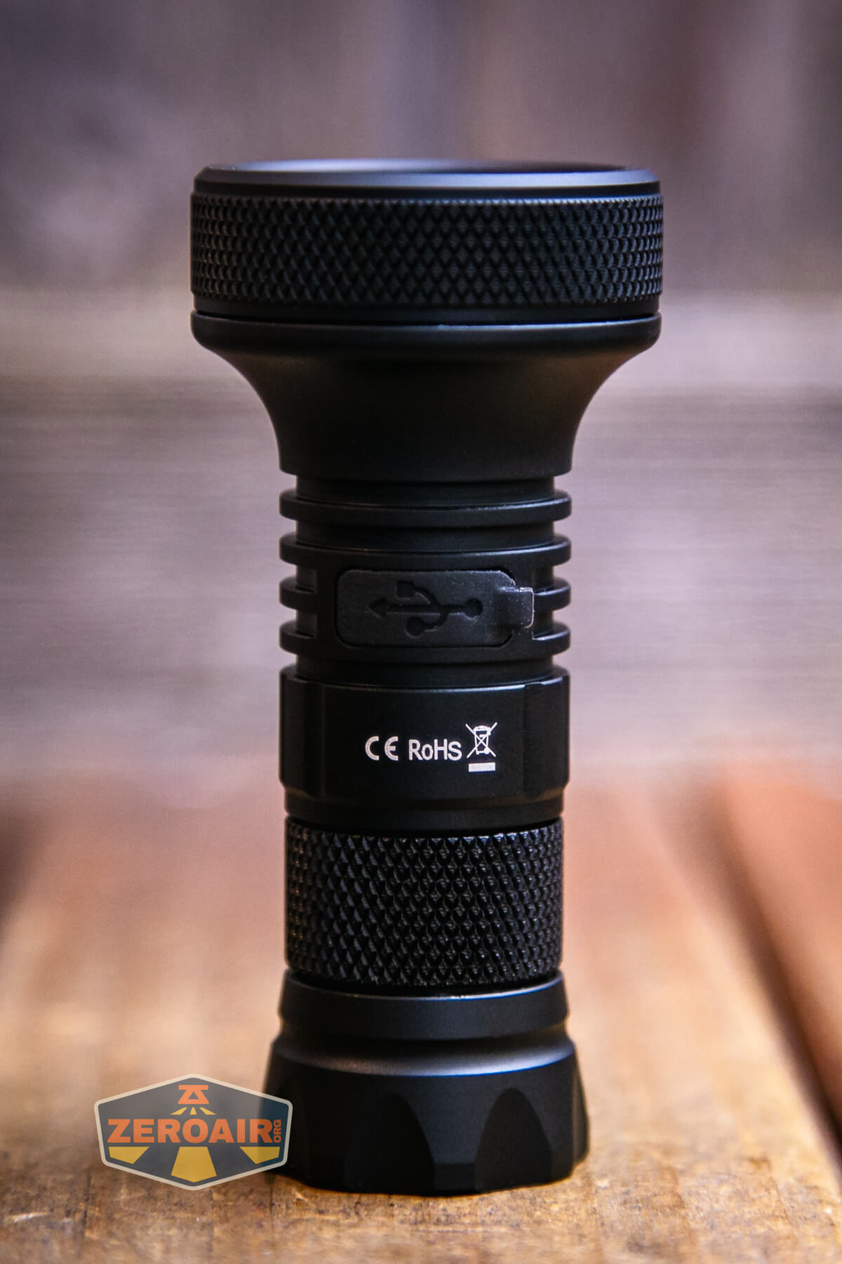 Built into the Sofirn IF19 long range flashlight is USB-C charging. The charge port is in the head, just opposite the switch. These two items (switch and charge port cover) are different enough that you’ll not confuse them.