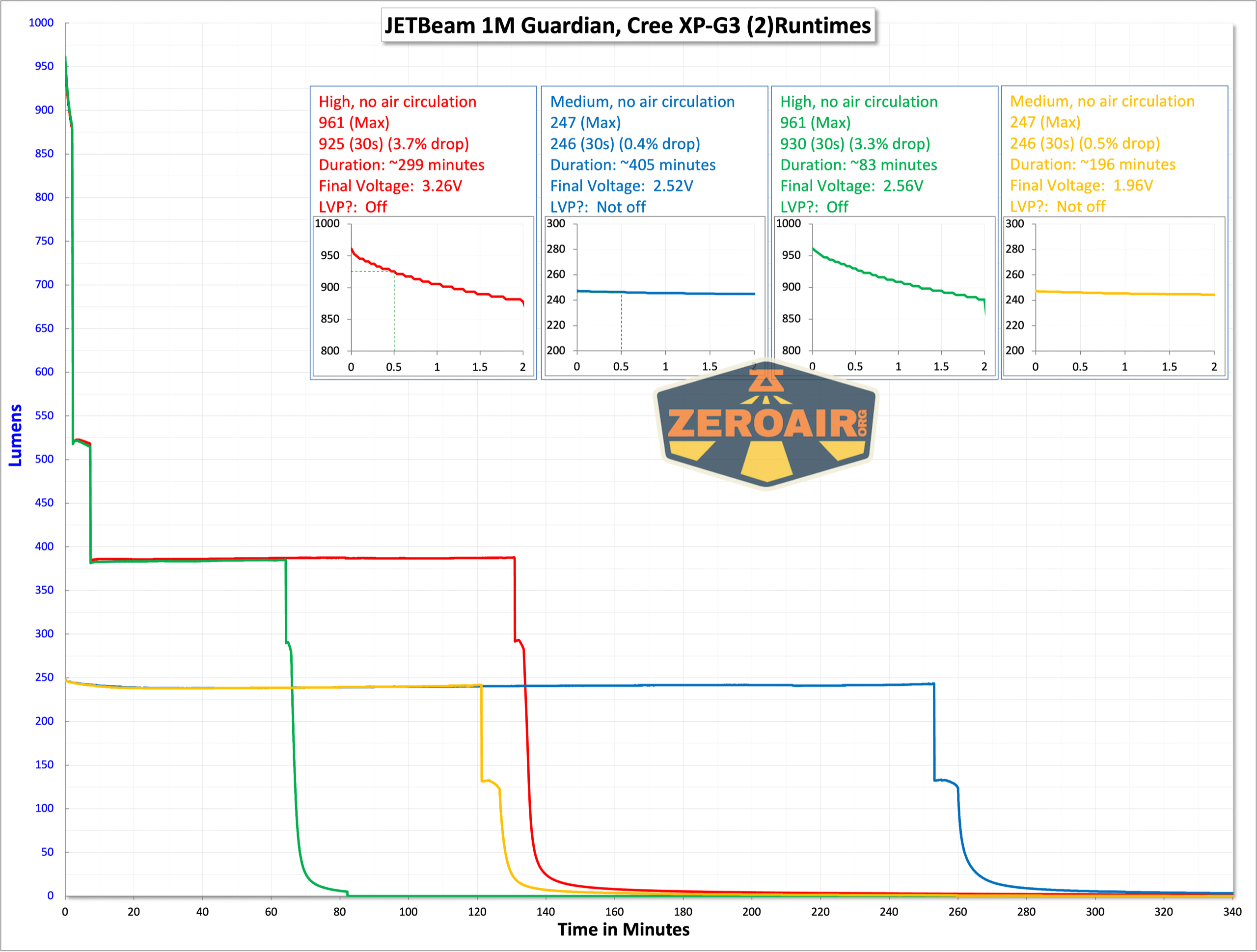 The order below is as above – LMH then red then green. Nothing here is really PWM and isn’t really noticeable while using the JETBeam Jet 1M Guardian flashlight.