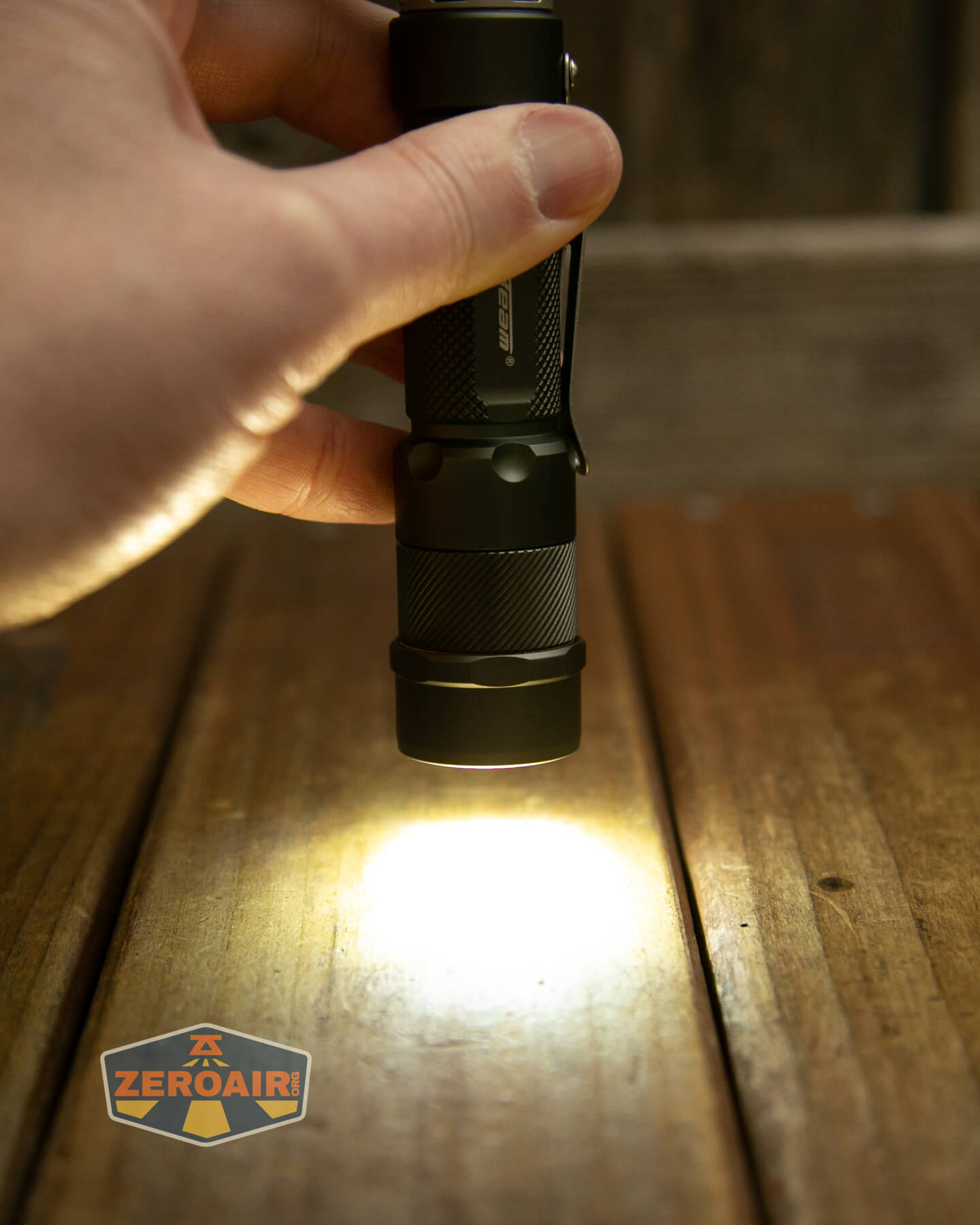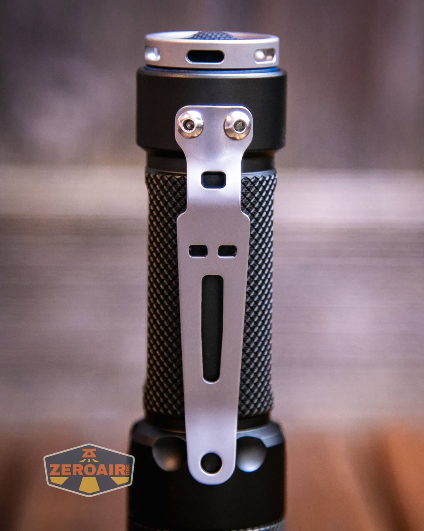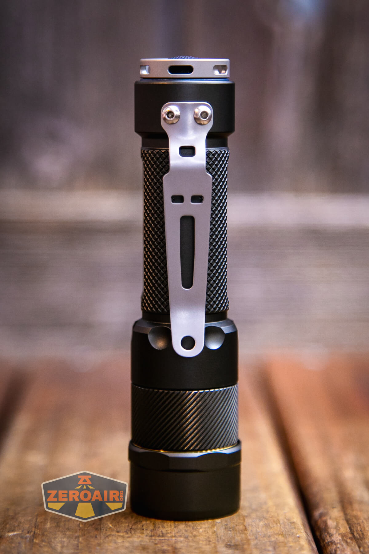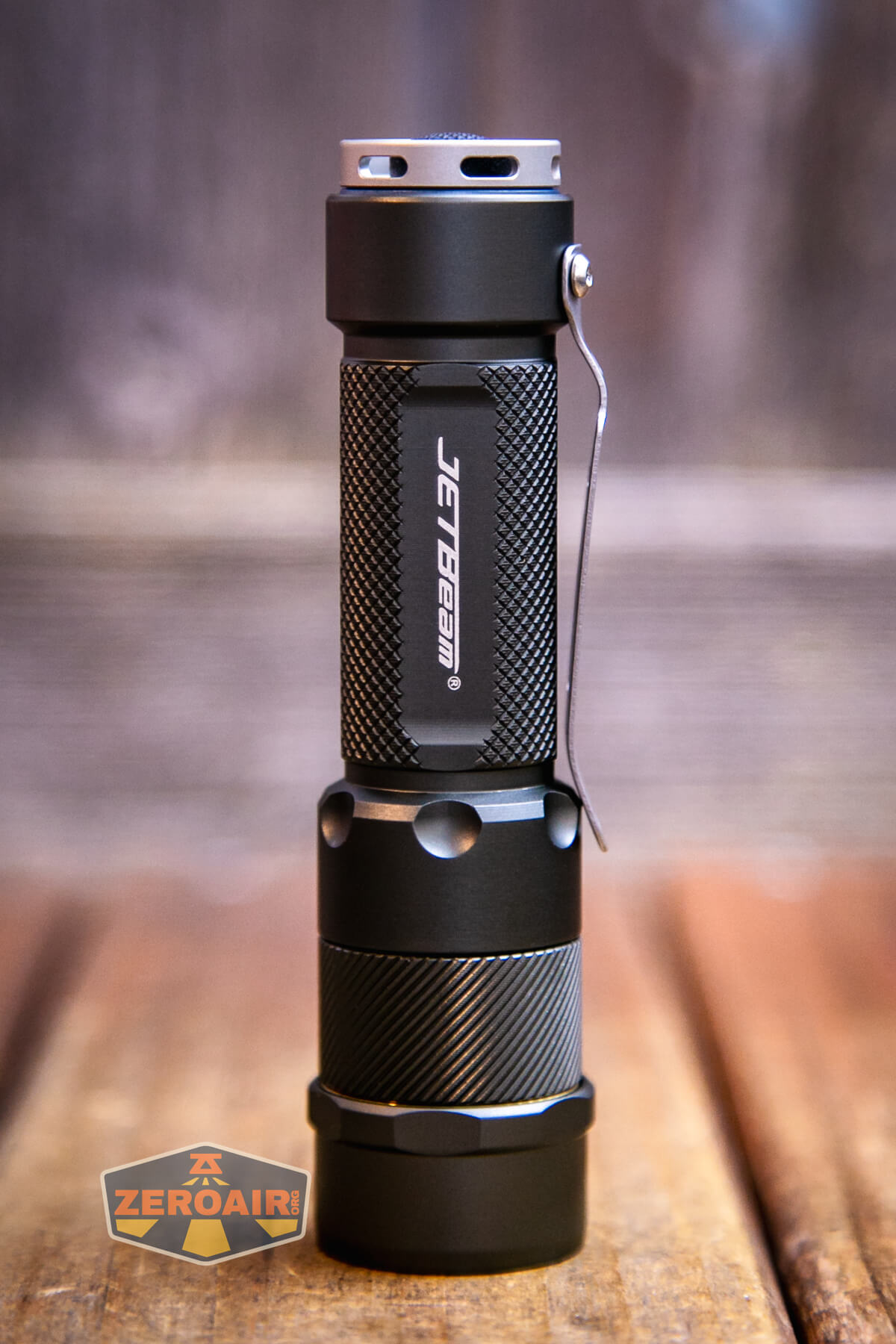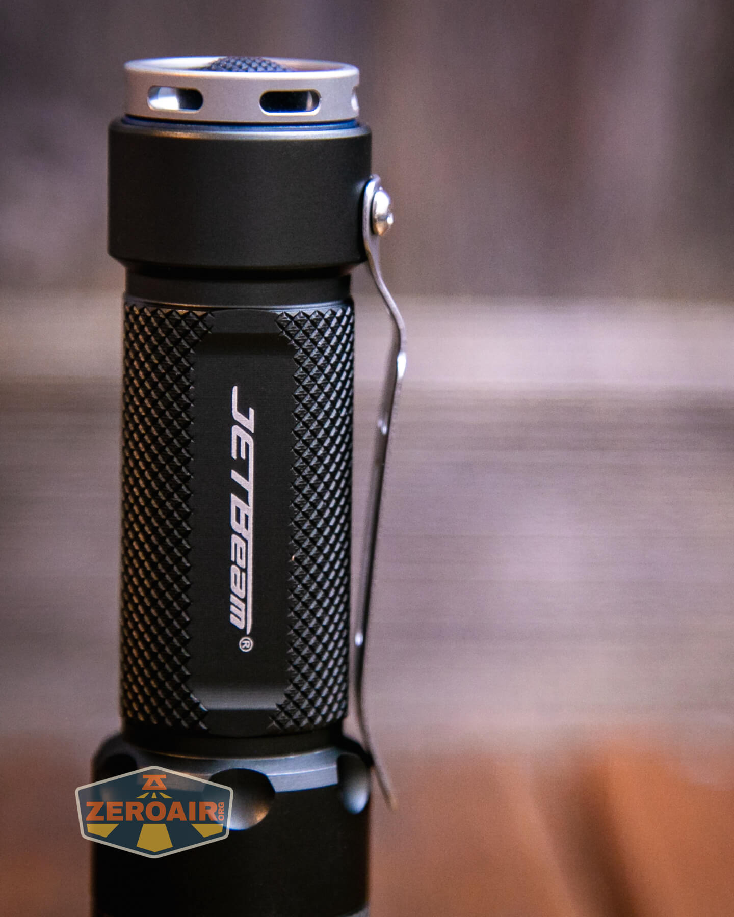 JETBeam uses a fairly standard screw-in pocket clip for the 1M Guardian. The clip attaches to the tail end and allows for only bezel-down carry. It’s a fairly thin and springy clip and does not really allow for super deep carry.