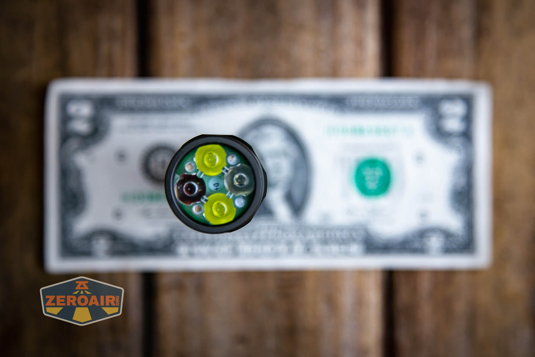 With the extension removed, the 18500 size is very compact. I’ll mention 18500-specific aspects below, but primarily just check out this body size, and note how great it is. You might note similarities between this light and the Emisar D4V2, and I think you’d be right. I’m inclined to call the JETBeam Jet 1M Guardian a flashlight for people who don’t want to fool with Anduril or an e-switch or any number of things. Or maybe you (like me) cower in the face of the many choices a D4V2 can be purchased with, and need fewer options.