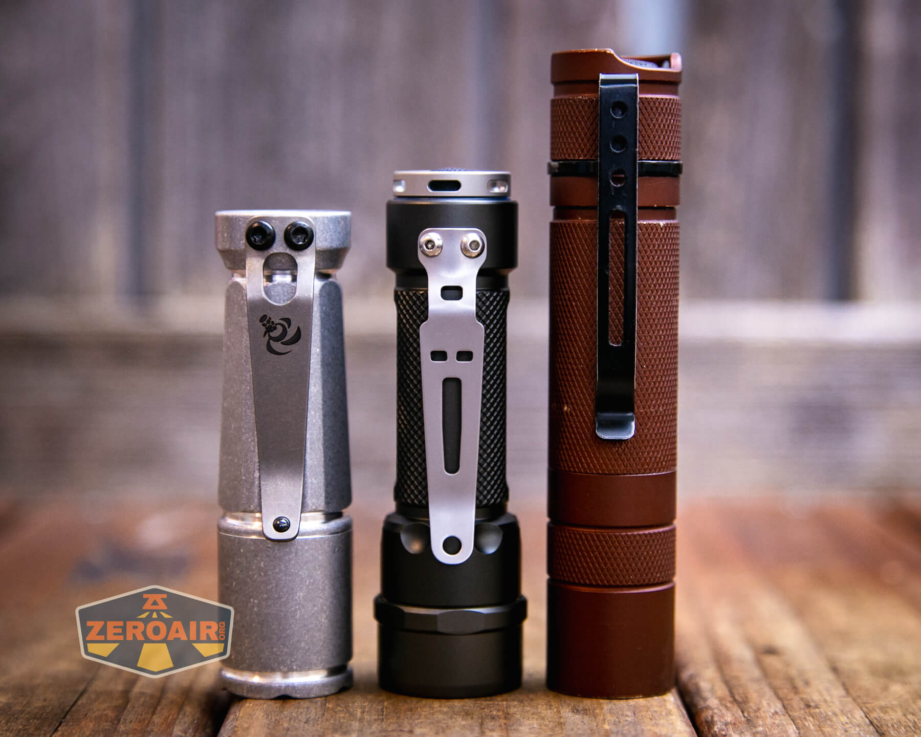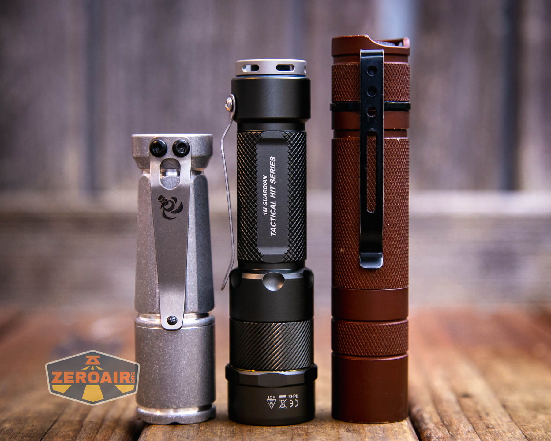 Also above on the left is a new feature light!! Laulima Metal Craft sent this Todai in tumbled aluminum for some size comparison photos like the ones above. Laulima has a bunch of incredible items. I’ve tested one (the Laulima Metal Craft Hoku) (the official site for Hoku is here) that was a Friend Fund Friday review. I was impressed enough by that Hoku that I bought a Laulima Metal Craft Diamond Slim (also in tumbled aluminum) (review is upcoming!) These lights by Laulima have impeccable build quality and not only that, they’re quite configurable. There are some (great, actually) default configurations, but Joshua Dawson (of Laulima Metal Craft) is open to ideas and emitter options and the like. I haven’t reviewed this Todai, but I have to say, it feels absolutely fantastic and I love it thus far. (Notably, I love how warm and eggy those emitters look through the TIR.)