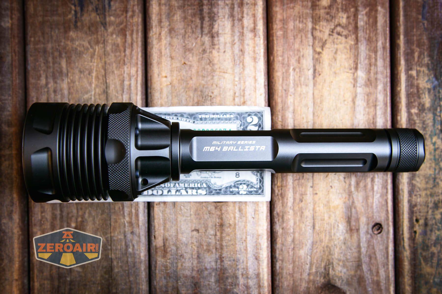 JETBeam uses a Luminus SBT-90 in the M64. It’s a great choice, of course. This emitter is capable of very high output and coupled with this smooth and deep reflector, offers great throw, too.